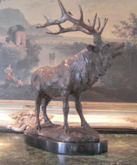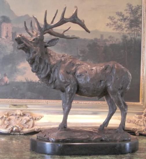 Standing Elk Bronze Sculpture, 17"L x 7"W x17"H26 lbs. This bronze sculpture was produced using the "Lost Wax" casting method. The"Lost Wax" Cast method is the most precise metal casting technique in existence, ensuring exquisite detail of the original host model which is usually sculpted in clay or wax. This "Lost Wax" casting method is an extremely labor intensive and expensive process, but the end results produce a Heirloom Quality Masterpiece!