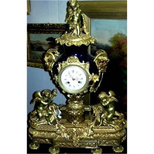 <tr><td>Title:Large Bronze and Porcelain Clock with Cherubs</td></tr>