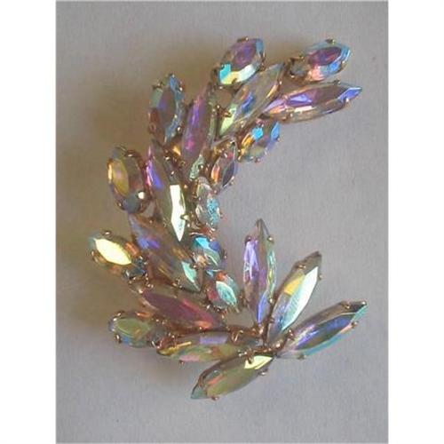 Spectacular Brooch of Aurora Borealis Navette Rhinestones</em></td>