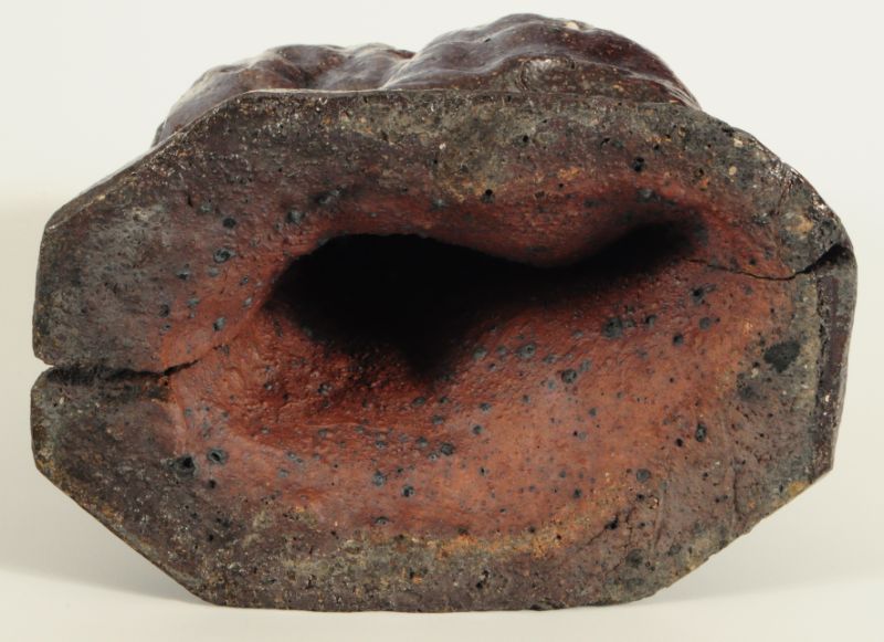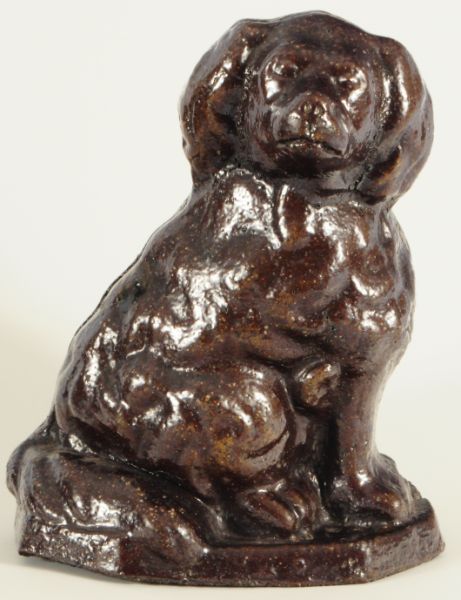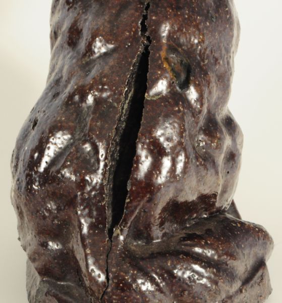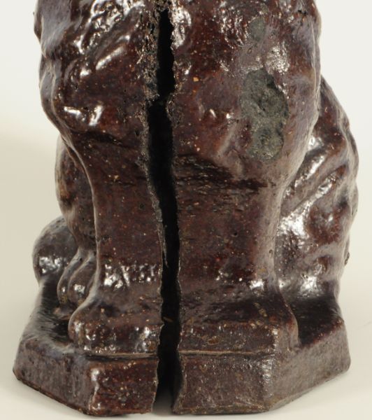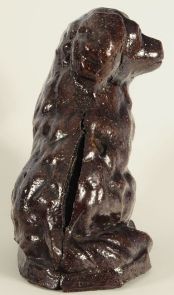 Large Brown Sewer Tile dog. Probably Midwest origin. Purchased before 1986. Two sizeable vertical firing cracks. Amazing that it remains unbroken.