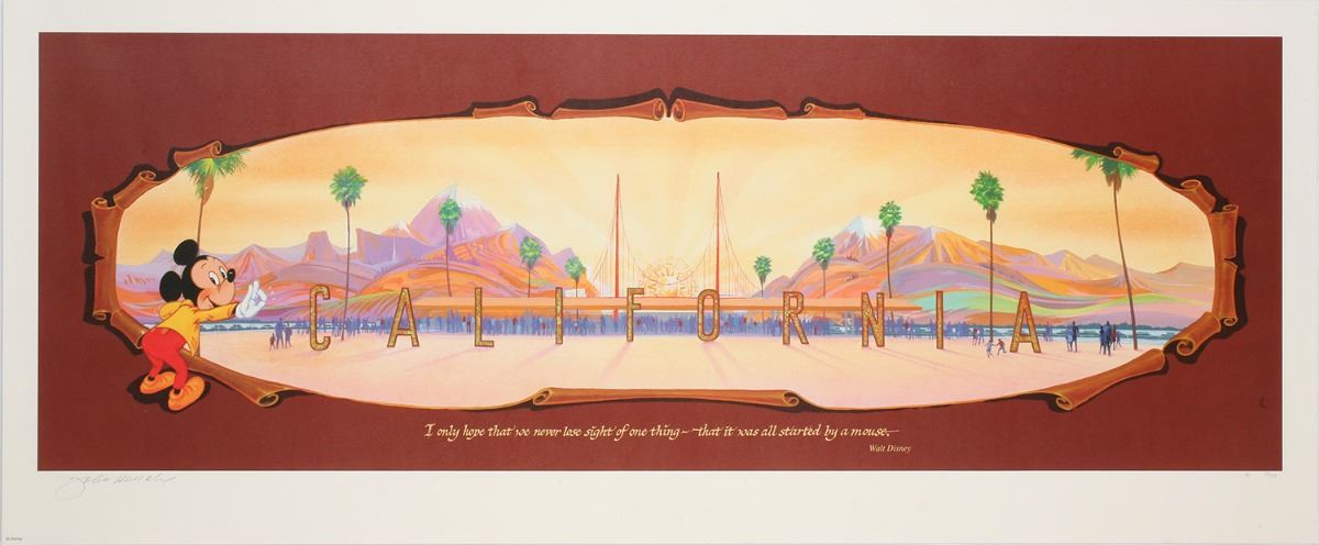 (California Adventure, 2000s) Large print by John Hench, signed by the artist. Numbered 15/250. Measures 15"x38". In fine condition with minimal wear.