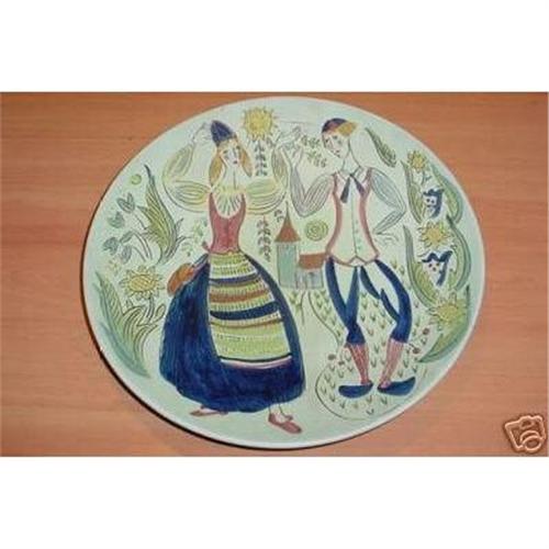 Large Rostrand Carl - Harry Stalhane Charger. The plate measures 14 1/2 inches in diameter and is in perfect condition. The bottom base is marked "R Sweden Handpainted".