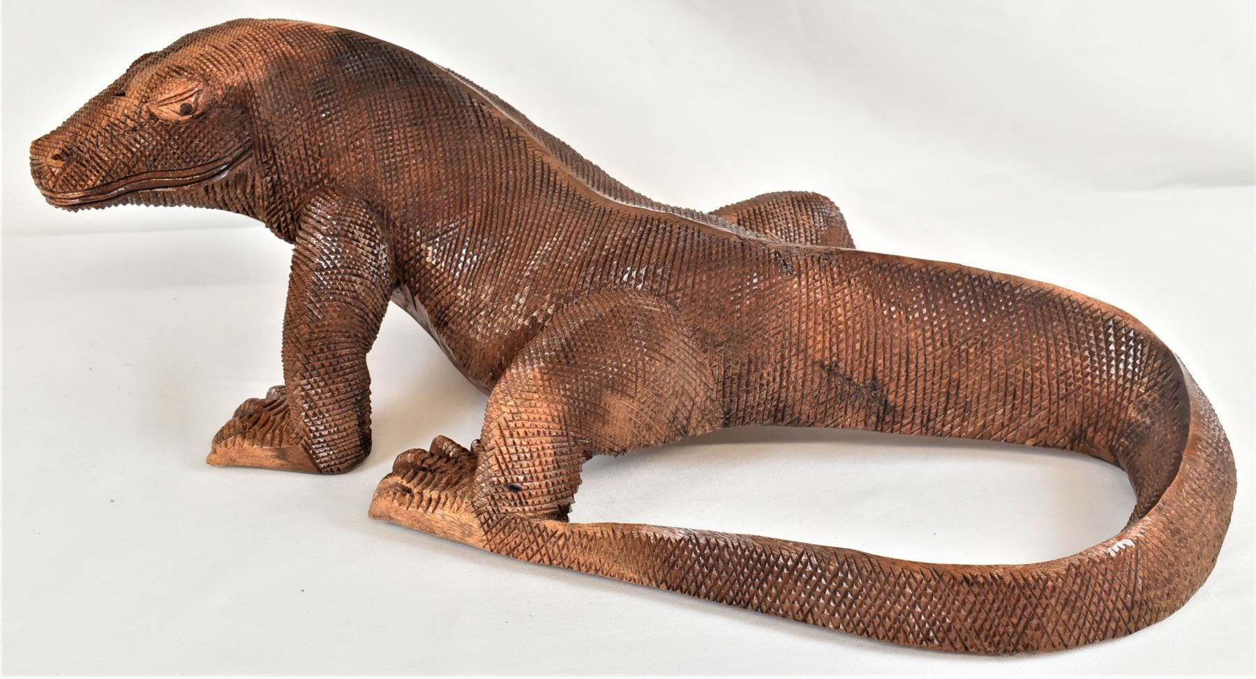 Large Balinese Carved Wood Komodo Dragon Lizard Statue, measures 12'' x 21'', made in Indonesia, great detail