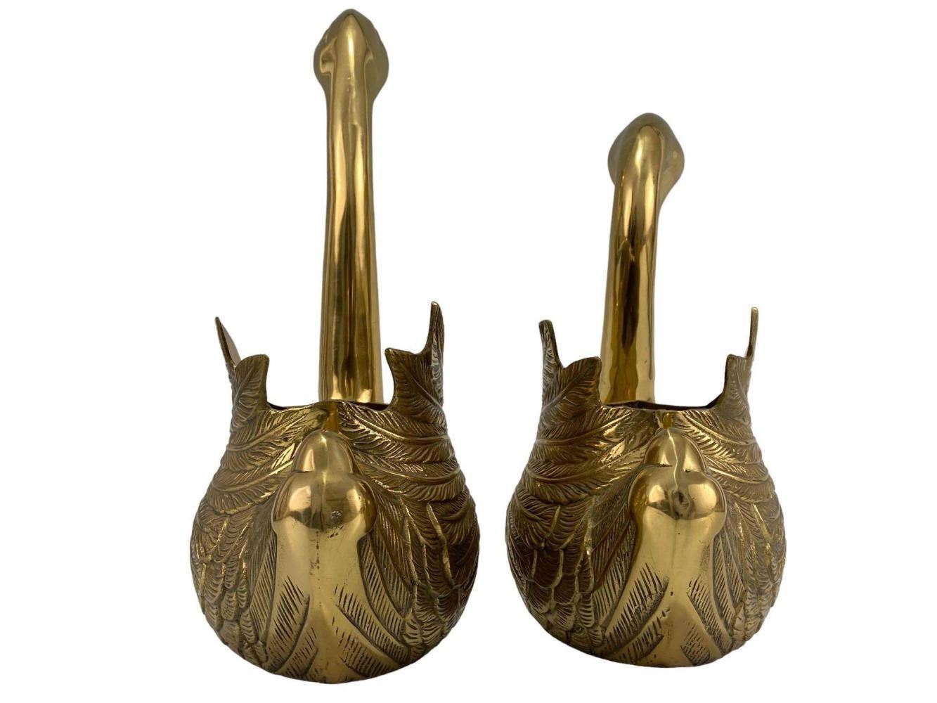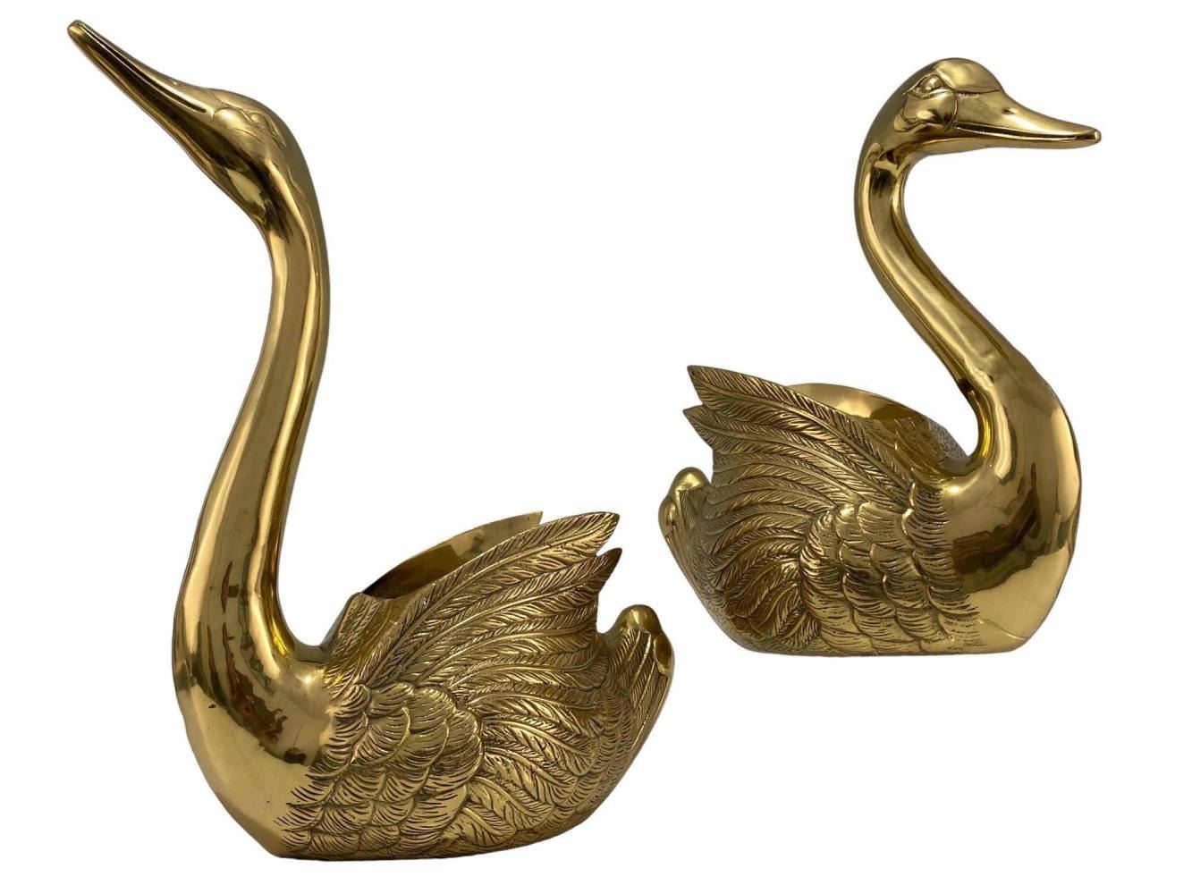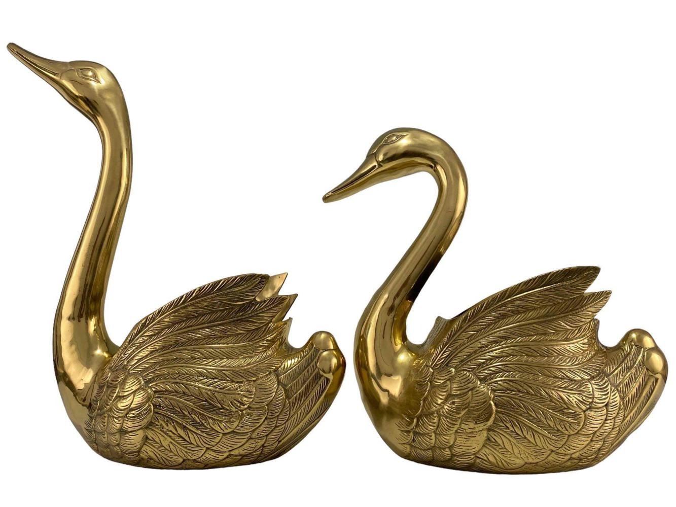 Large Cast Brass Decorative Swans. Unmarked. Approximately 17.625H x 11.75W x 6.25D in. Approximately 13.875H x 11.0W x 5.75W in.