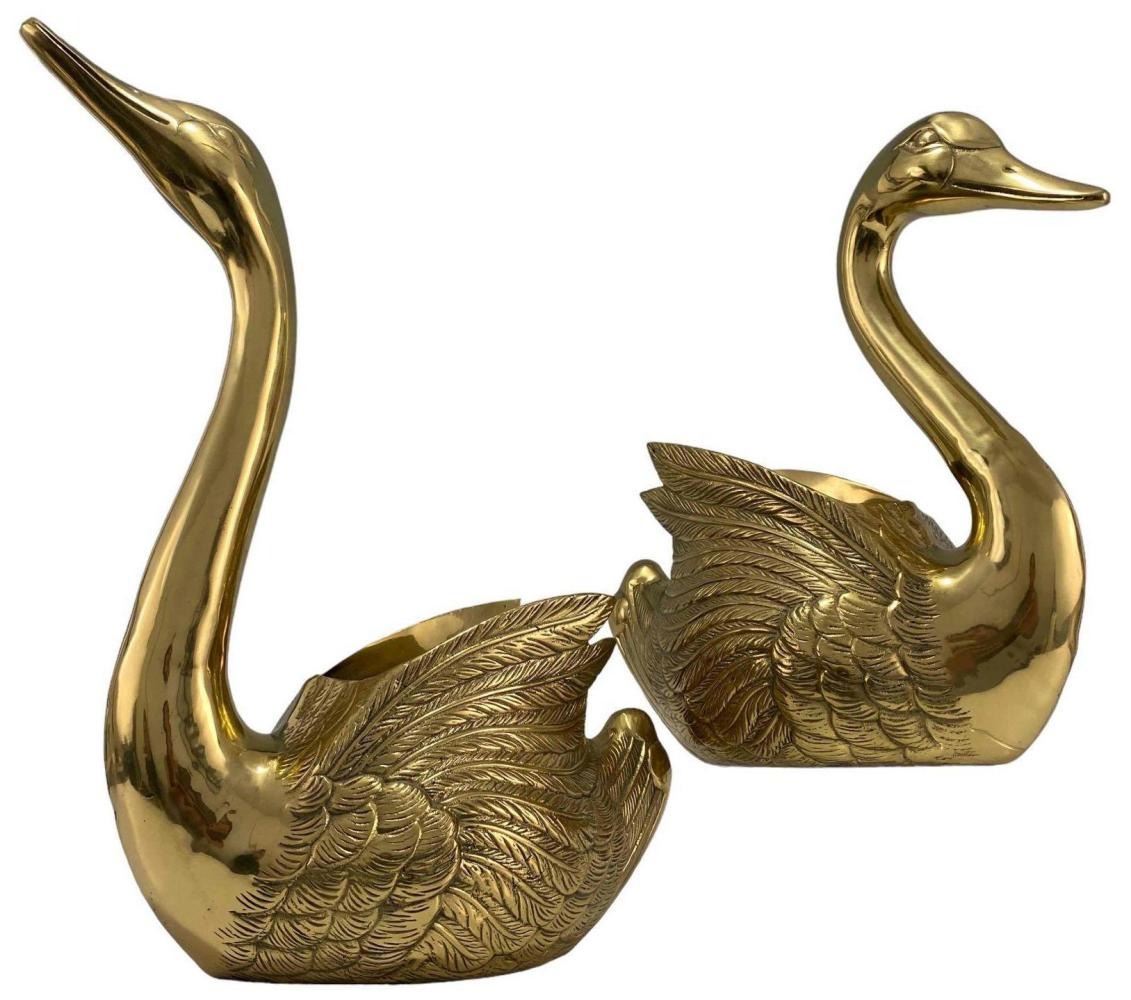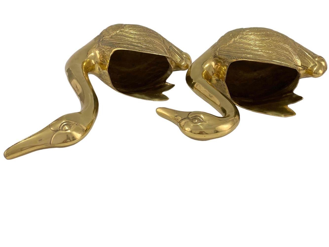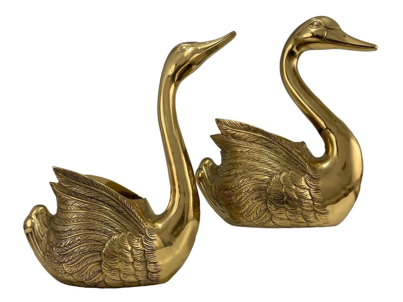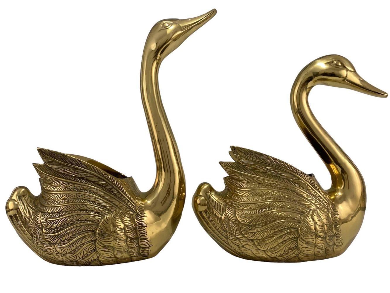 Large Cast Brass Decorative Swans. Unmarked. Approximately 17.625H x 11.75W x 6.25D in. Approximately 13.875H x 11.0W x 5.75W in.