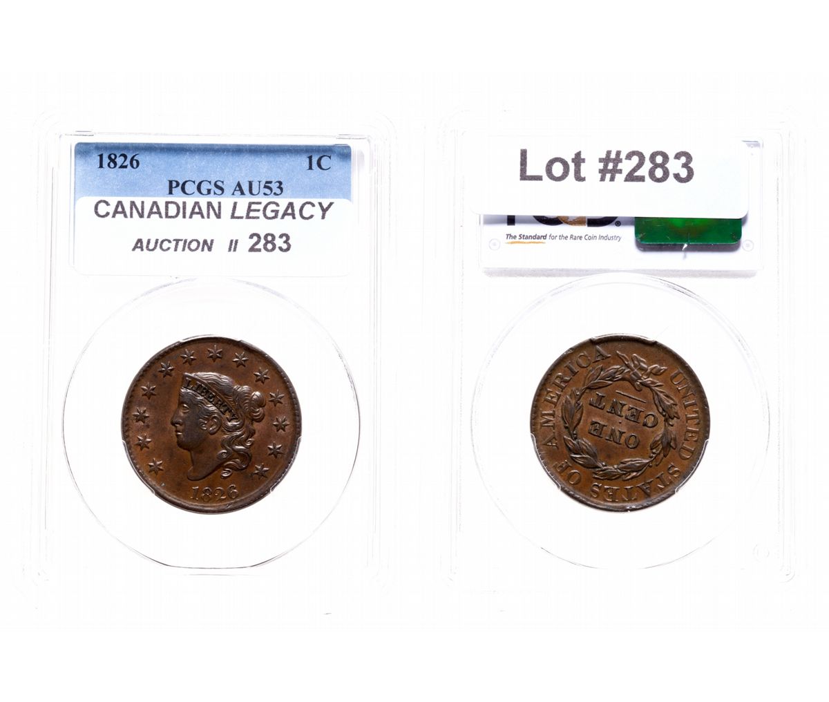 Large Cent. 1826. PCGS graded AU-53. Glossy brown.