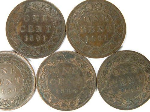 Canada Large Cent 1891 Large Date two pieces, 1894, 1900 and 1900H. Total five pieces all EF