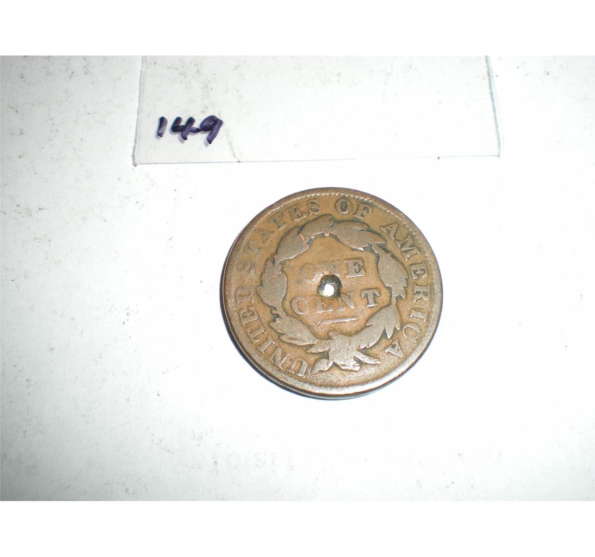 Large Cent No Date holed***Coin, Currency, Gemstones & All Items Listed in this auction along with their respective Grades, Conditions and Values are not T&T Auctions Responsibility. Every person has their own opinion. It is the responsibility of the buyer to examine, grade and value each item in this auction to their own satisfaction before they bid. Bidders shall rely entirely on their own inspection and information before bidding.