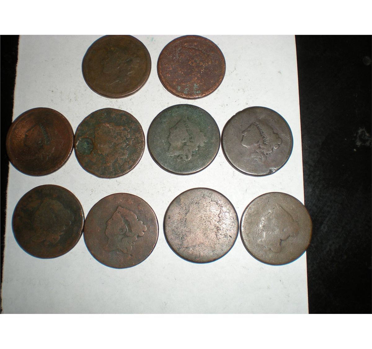 Large Cent No Date x 10 coins ***Coin, Currency, Gemstones & All Items Listed in this auction along with their respective Grades, Conditions and Values are not T&T Auctions Responsibility. Every person has their own opinion. It is the responsibility of the buyer to examine, grade and value each item in this auction to their own satisfaction before they bid. Bidders shall rely entirely on their own inspection and information before bidding.