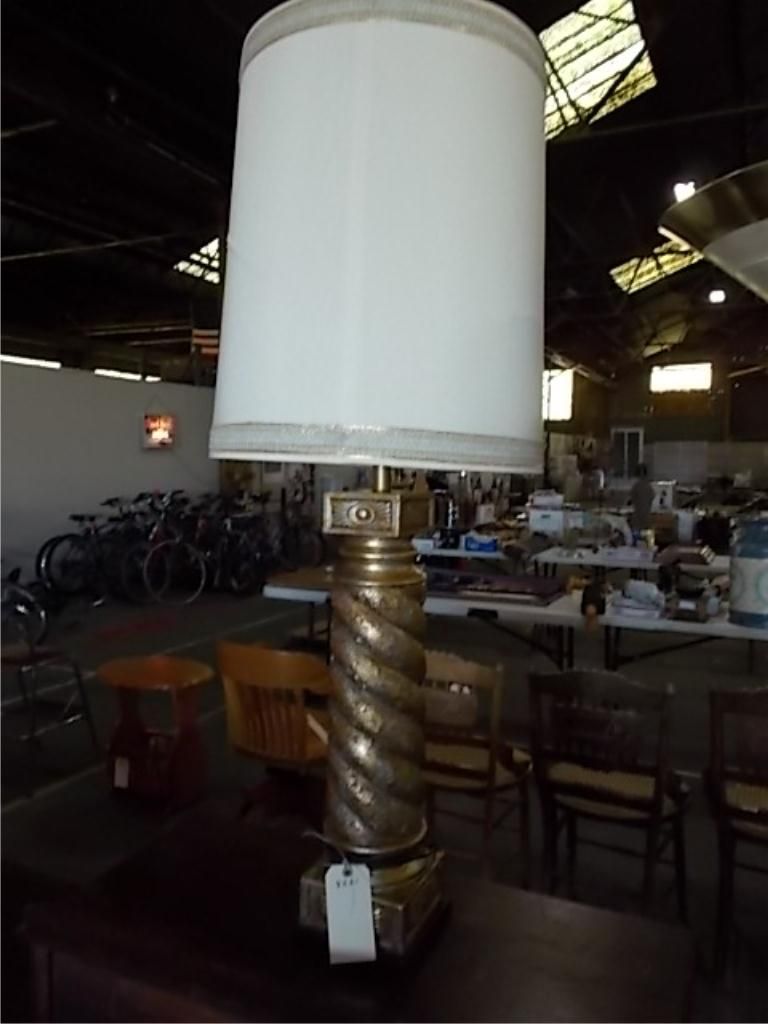 Large Ceramic Column Style Lamp With Shade approx 7" wide mx 40" tall without shade