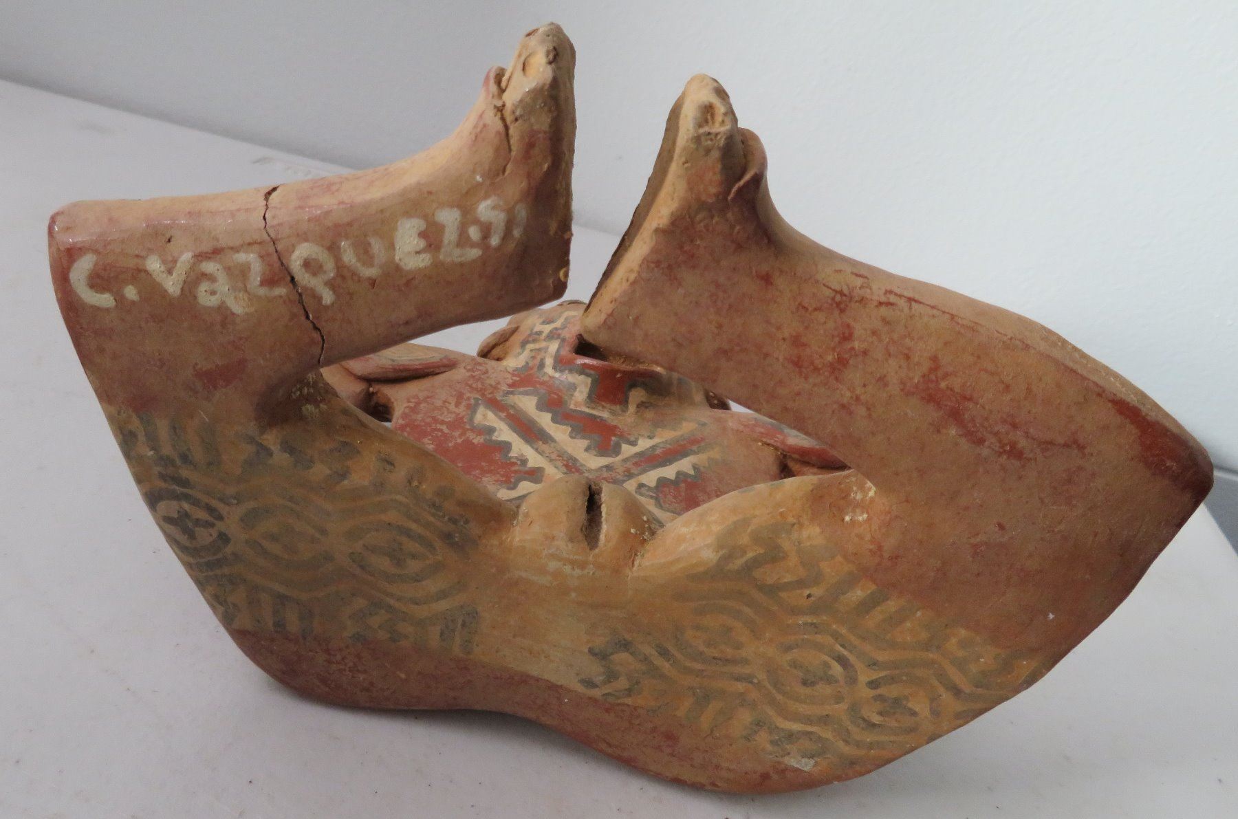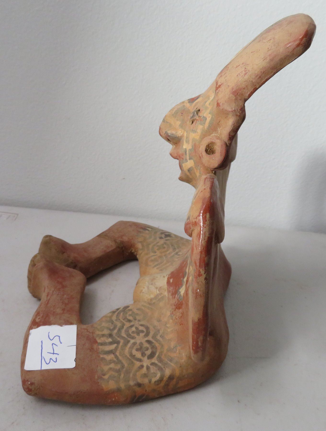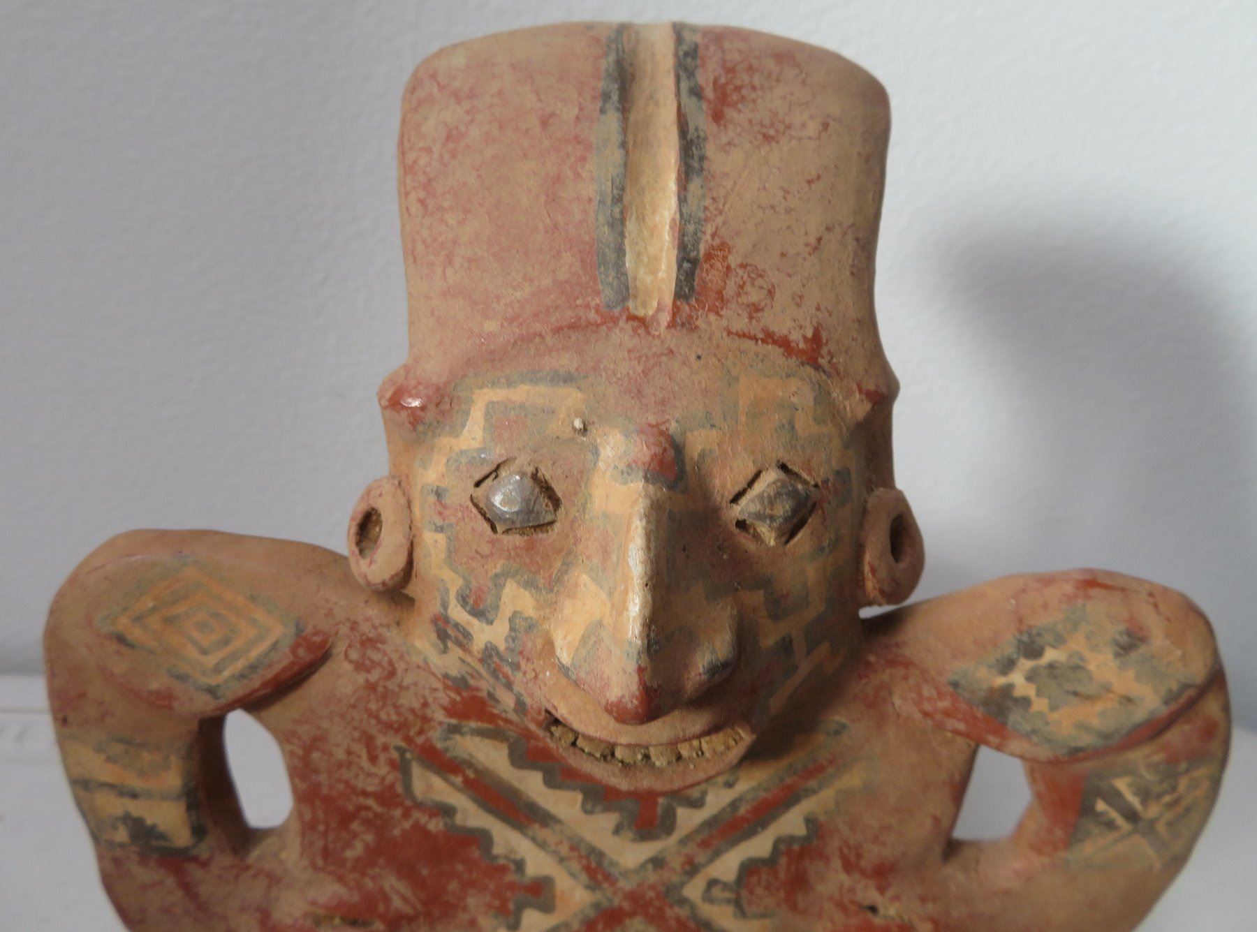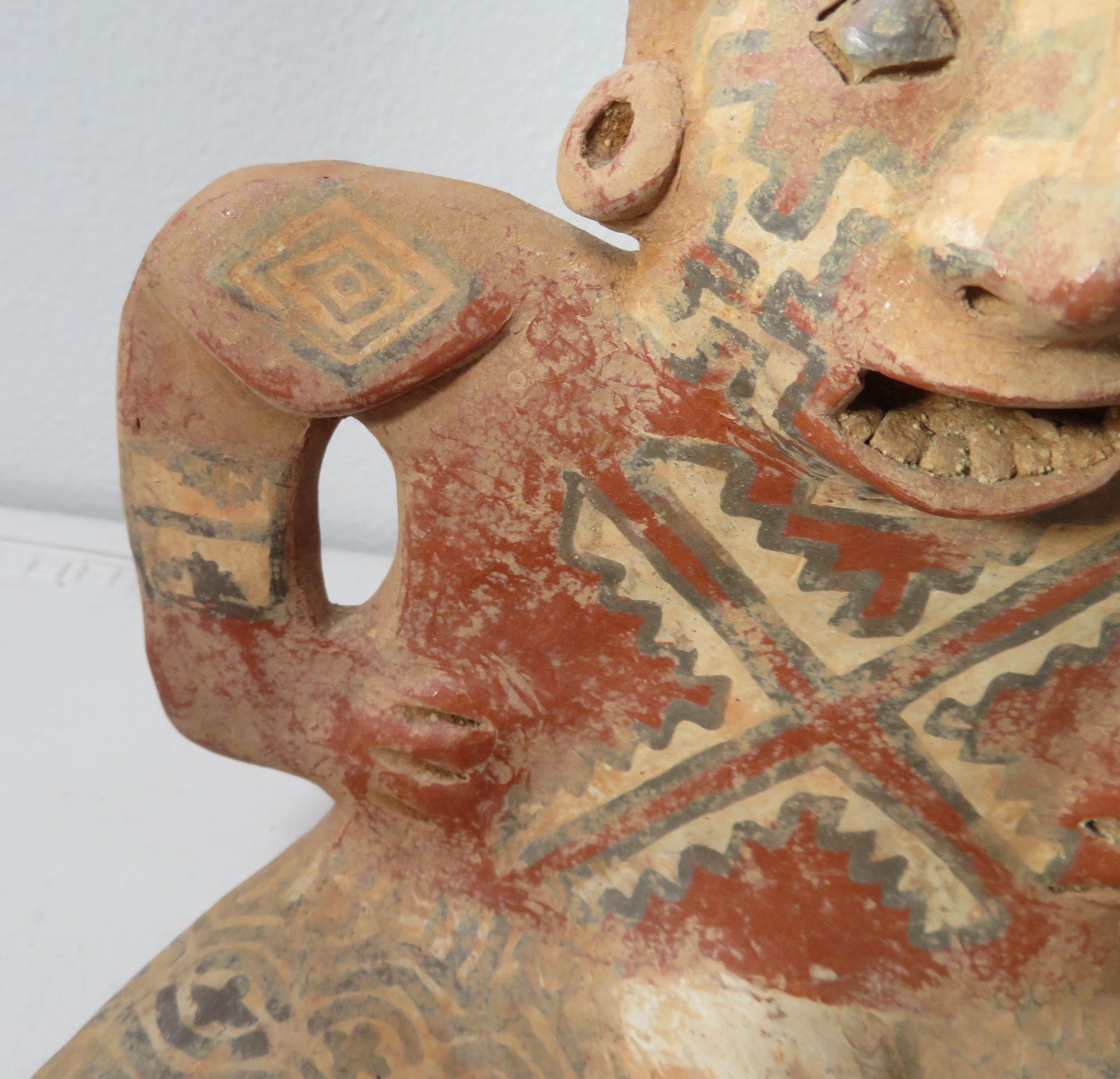 Large Ceramic Human Figure, pre-Columbian-style. Made of clay and paint, the item measures 7" x 7" x 7". Signed C. Vazquez, 91. Condition: Good, nice paint, see images. Shipping: $35.00 w/insurance and signature, double-boxed.