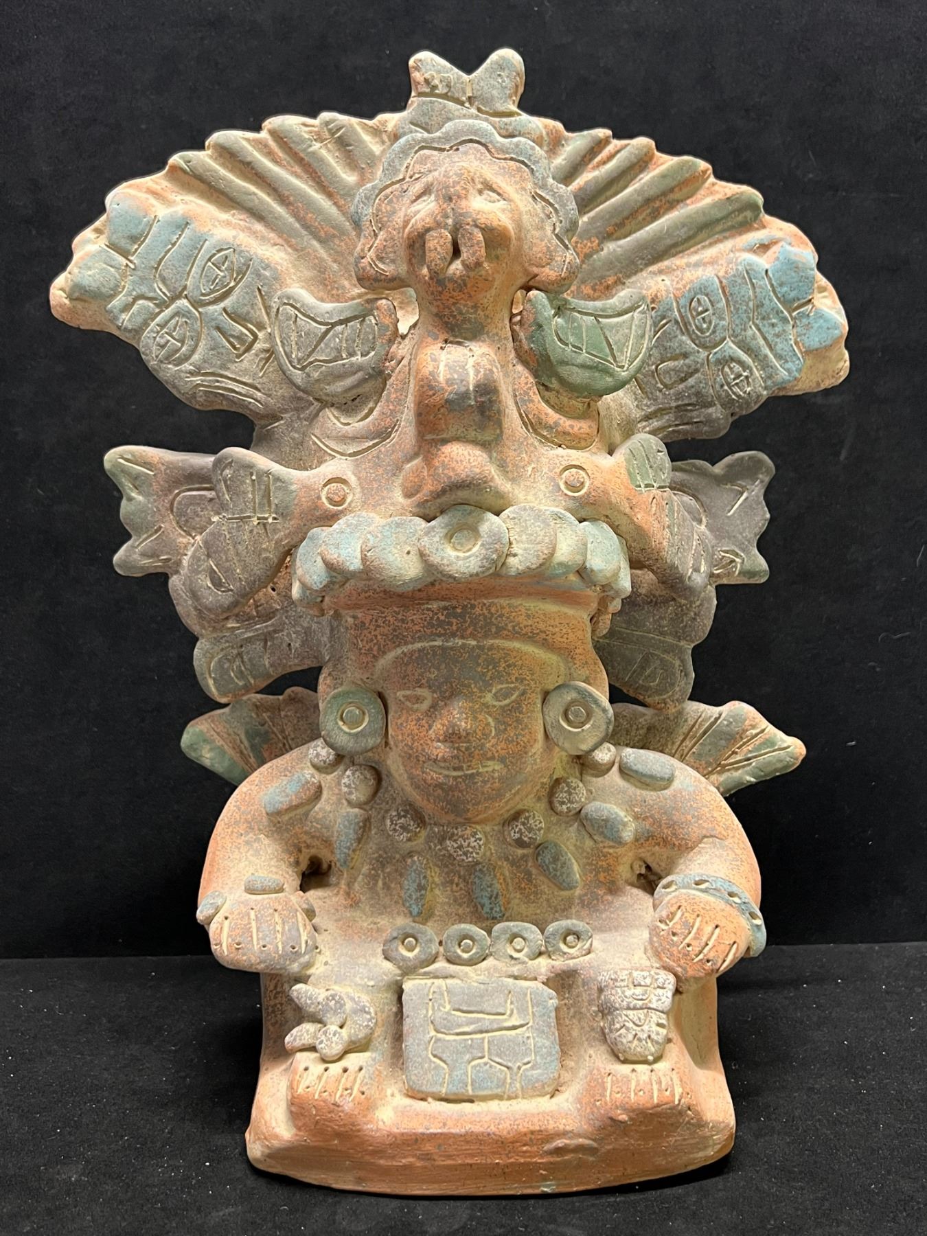 Large Ceramic Mayan Decorative Sculpture Approx: 12.5"T 10"W & 5"D