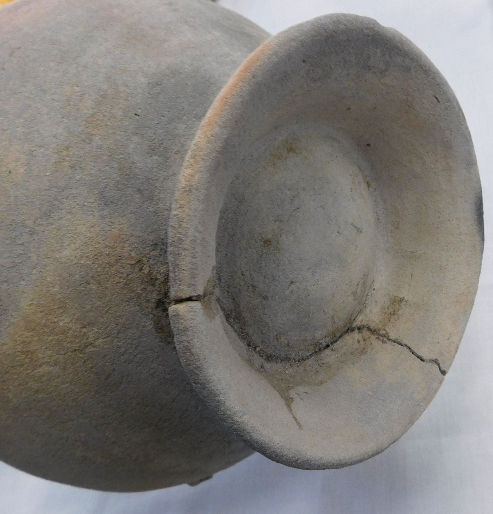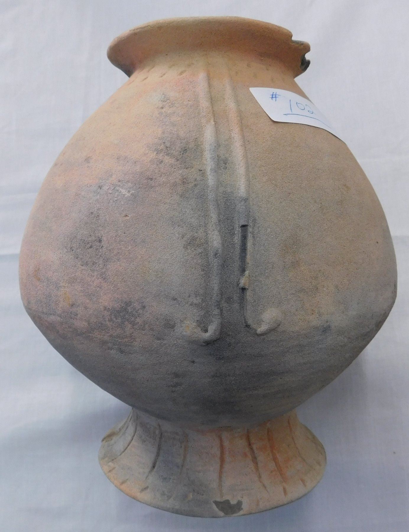 Large Ceramic Pot, ancient item. Made of clay, the item measures 9" x 9" x 10". Southern China. Condition: Nicks to rim and base, see images. Shipping: $32.00 w/insurance and signature, double-boxed.