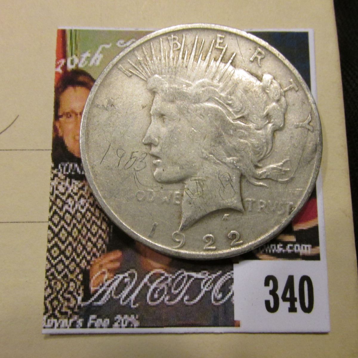 Large Certificate from February 3rd, 1912 "Nebraska State Historical Society" signed by President John Lee Webster; & 1922 D U.S. Peace Silver Dollar, VF.