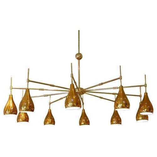 Large chandelier in the Style of Tommi Parzinger. Massive form with ten pierced heads.