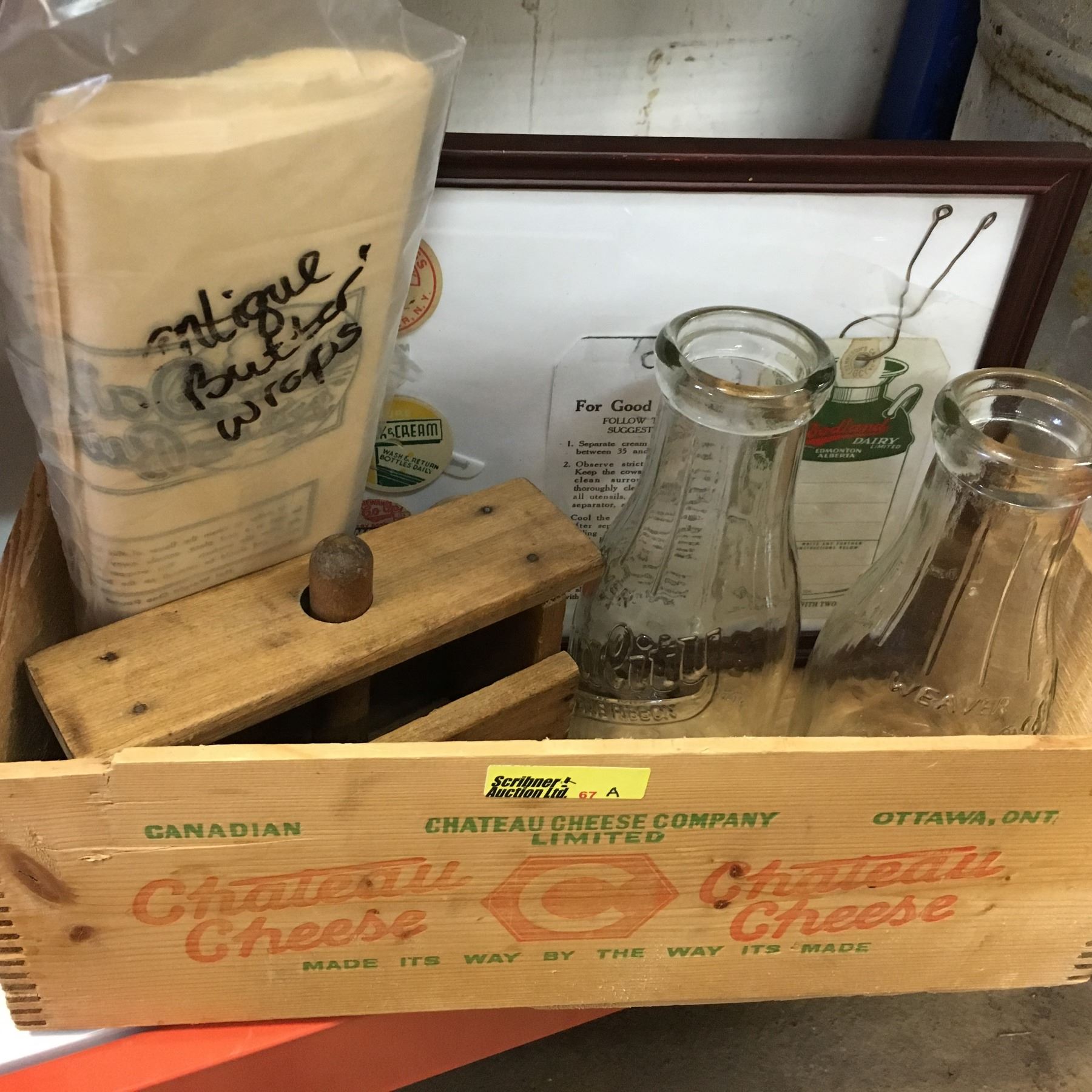 Large Cheese Box & Butter Press & 2 Milk Bottles & Pogs & Butter Wrappers