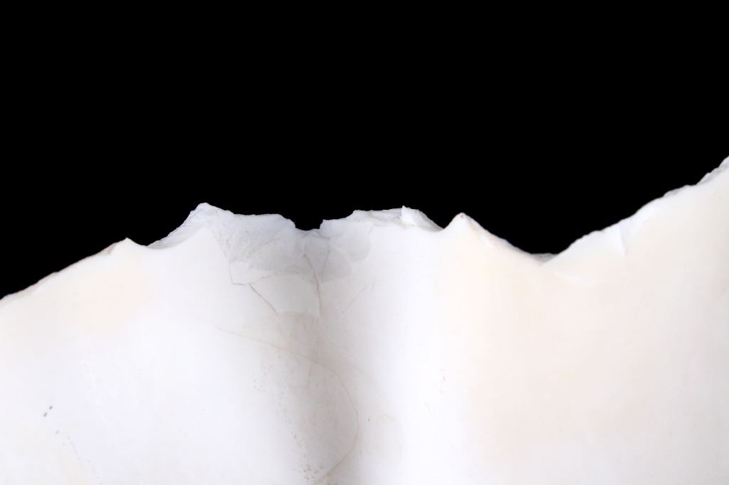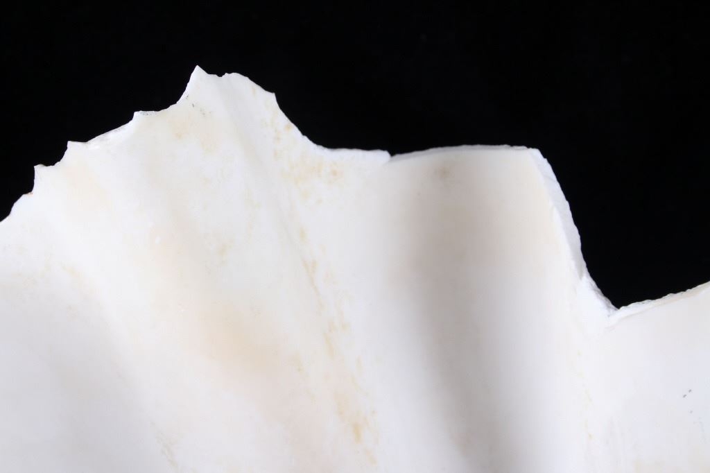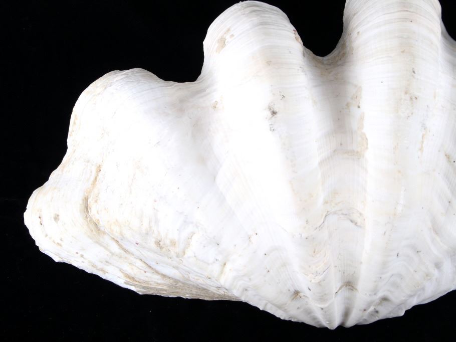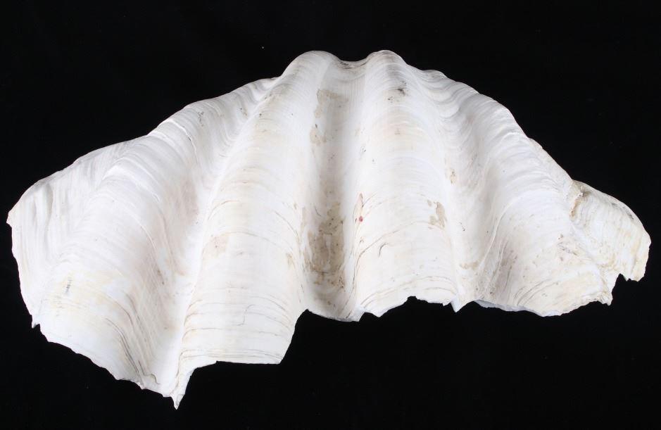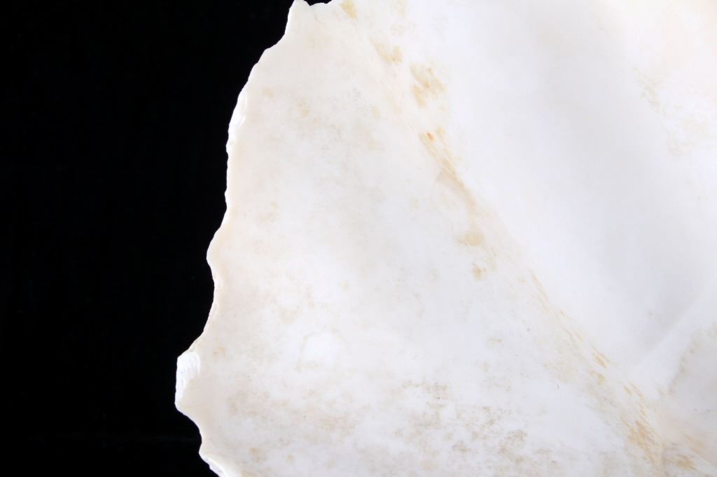 Available for your bidding pleasure is this large China Clam half shell. A clam is a marine bivalve mollusk. The shell consists of two halves, which usually share the same size. This shell shows white on the outer shell and a soft cream on the inner shell. The edges of the shell have been broken, but it still makes for a striking "display bowl". It measures 16 3/4" long by 9 1/2" wide and 6 1/2" tall.