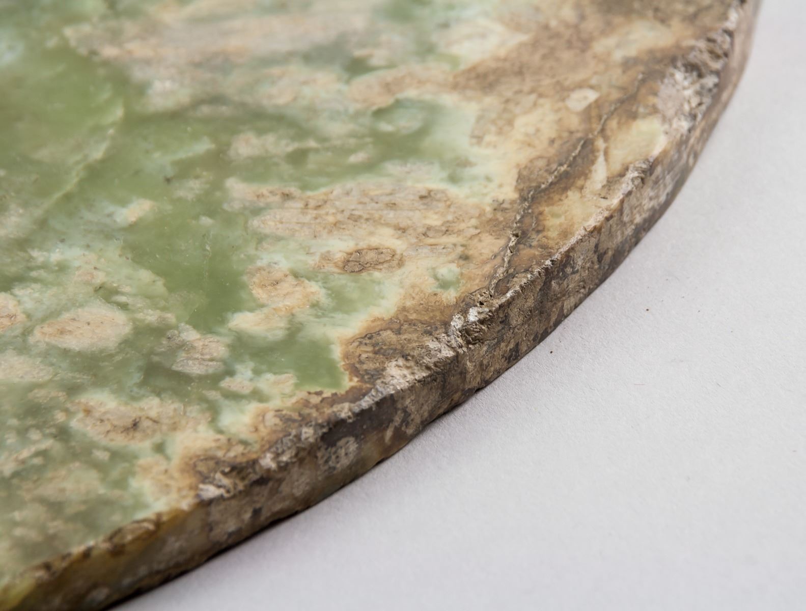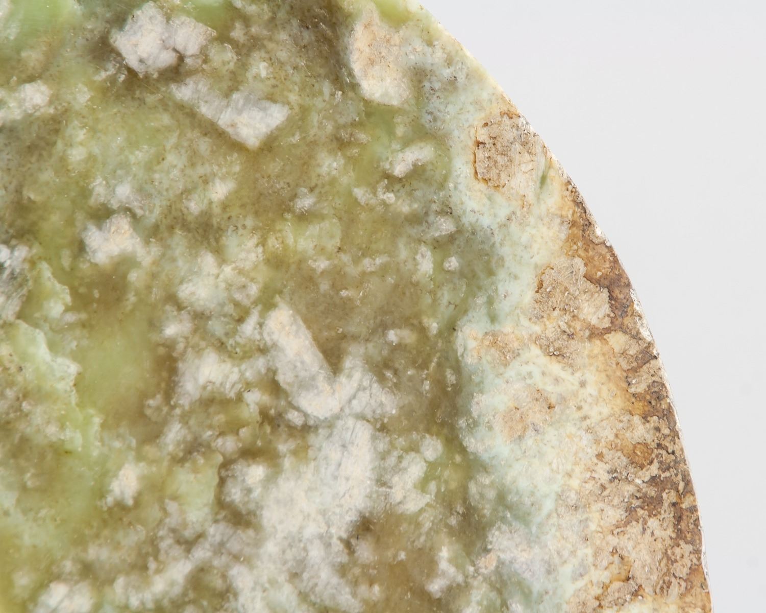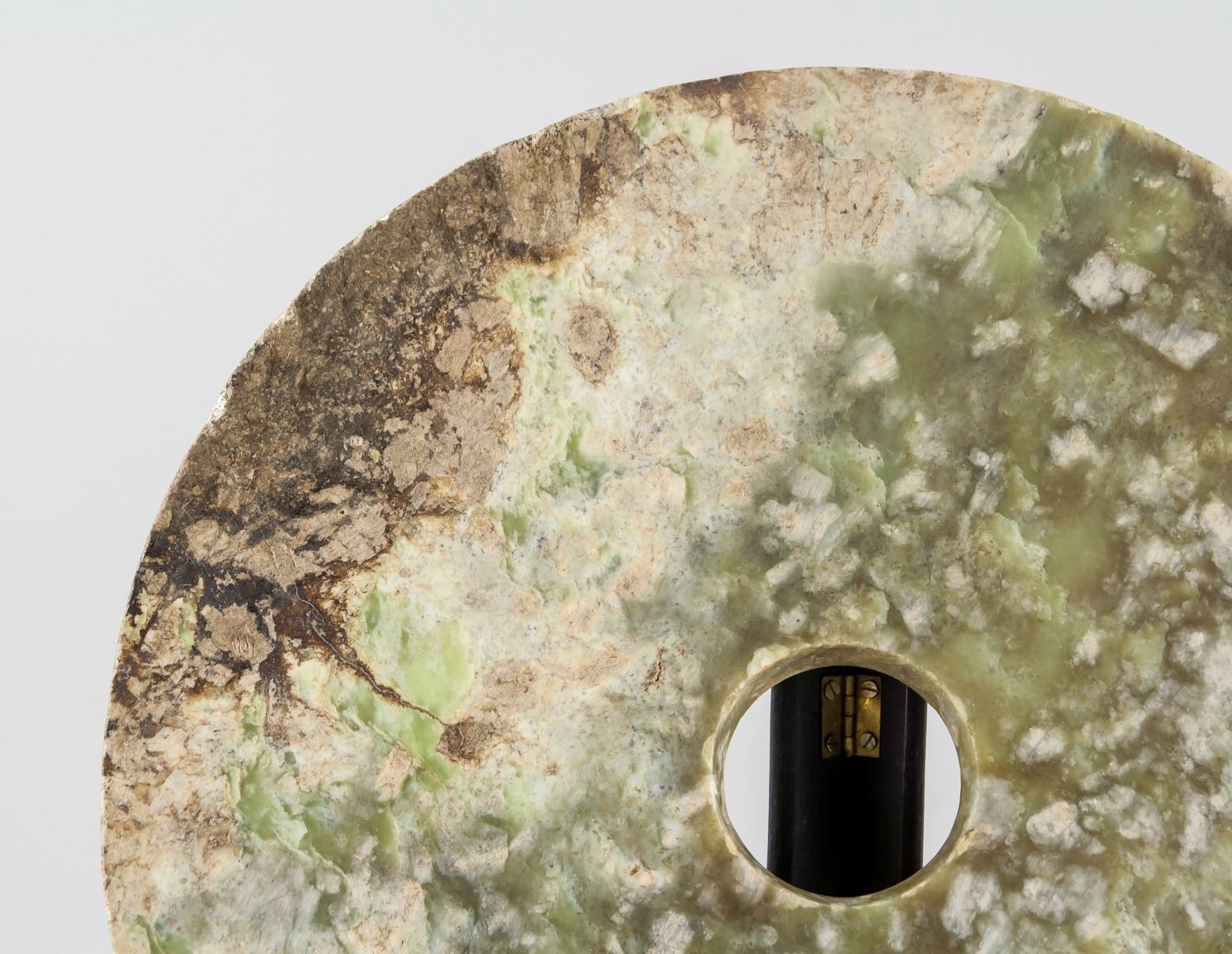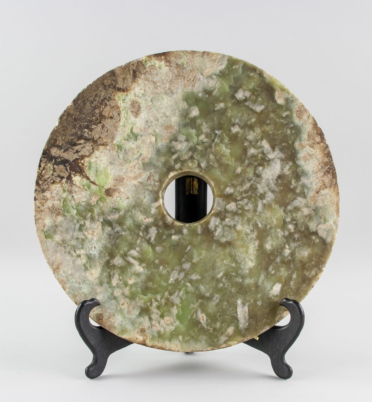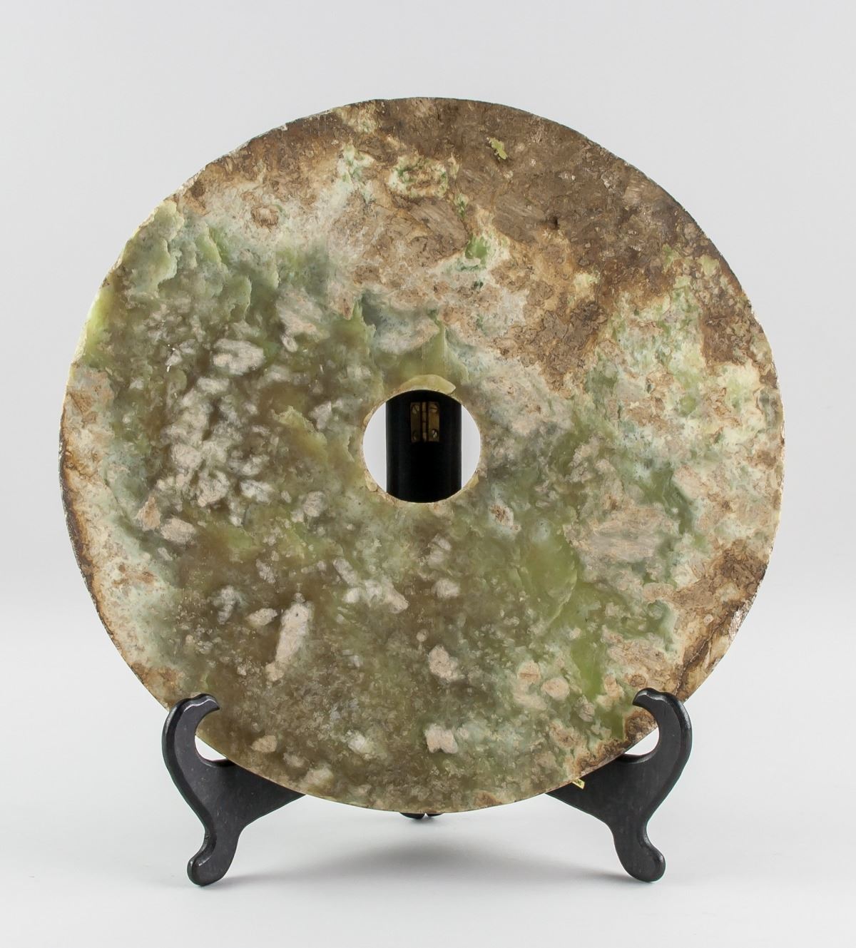 Chinese archaistic jade carved bi disk, featuring a circle with hold in middle, Height: 1 cm, Diameter: 3 cm, 2457 grams