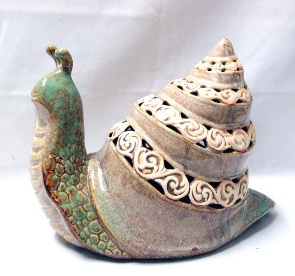 Large Chinese Ceramic Snail, measures 12'' x 9''