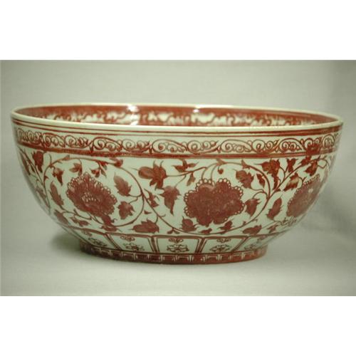 Large Chinese Copper Red and White Porcelain Bowl. Circa 1900. Very good condition.