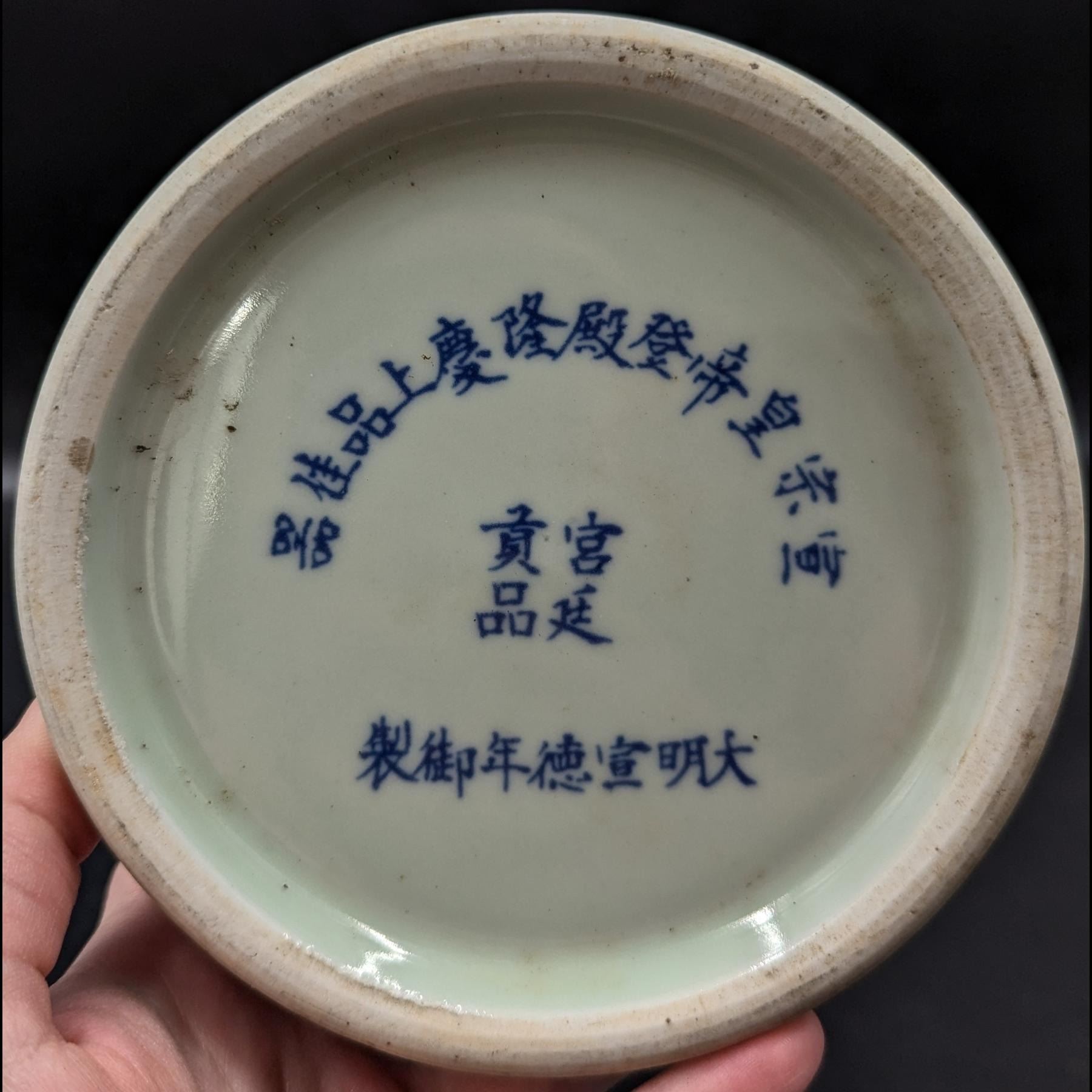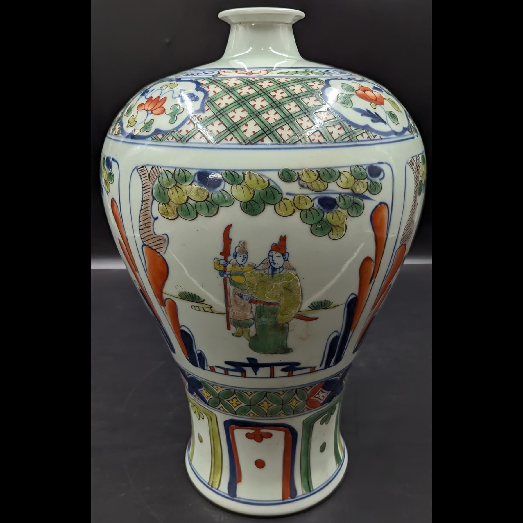 Large Chinese Hand Painted Doucai Meiping Story-Telling Vase With Calligraphy. Measures approx. 13 1/2" X 7".