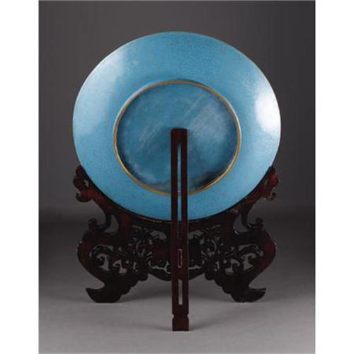 Large Chinese cloisonne enamel charger on stand