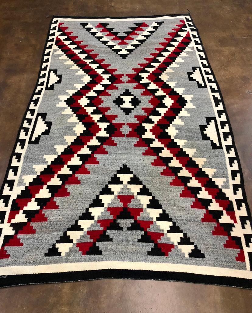 For your consideration we have this large circa 1930s Navajo rug featuring reds, blacks, grays and whites giving it an old Ganado feel. This nice old rug would make a great addition to your collection! Maker: Unknown Navajo weaver. Approx. Age: 1930s. Size: 57 inches wide X 97 inches long. Condition: Good for its age, some wear expected. Please look closely at the pictures - they are an important part of our description. Shipping: There will be a $10 handling / packaging fee for shipping this lot. The actual cost of postage will be added on top of that. BUY IT NOW: If you would like to buy this item now without waiting for the auction to end (this option is only available up to 48 hours before the auction starts to close), the “Buy it Now” price is the high estimate of this lot. If you would like to end the auction early and pay the high estimate (plus applicable fees), please contact us by phone or email and reference this lot number.