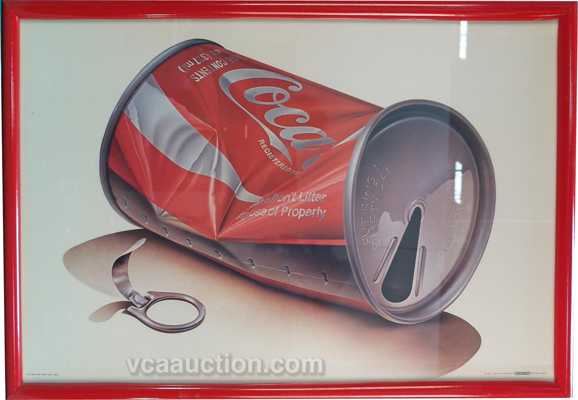 Large Coca Cola Print By Artist Tom Lidell, picture of Coca Cola can c1981 in frame - 41" x 29"