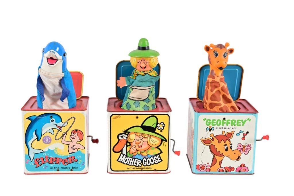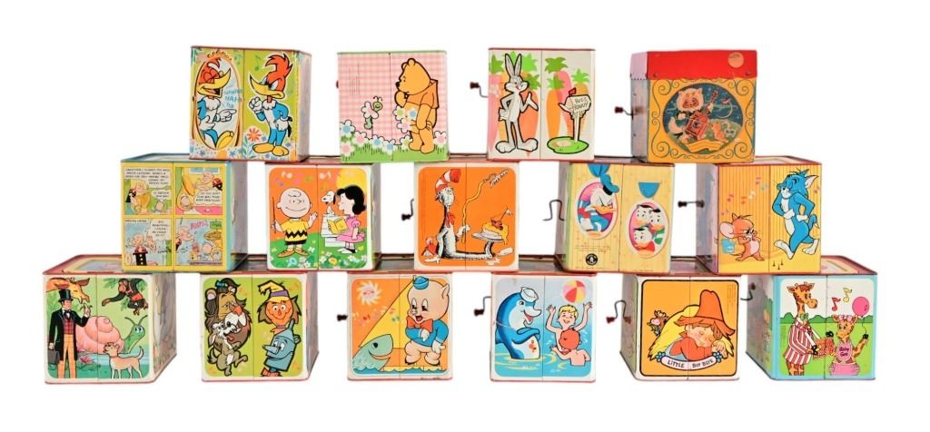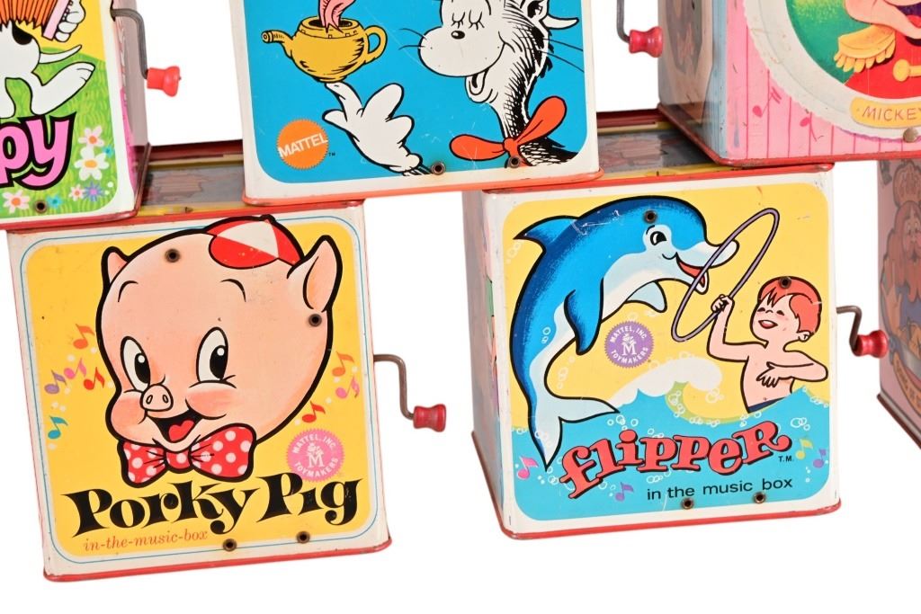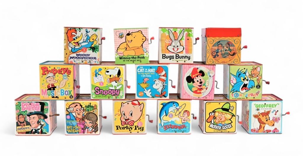 Large Collection of Fifteen (15) Mattel Jack-In-The-Box from the 1960's and 1970's. Various conditions.