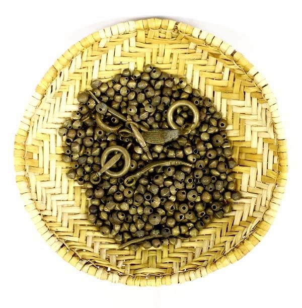 Large Collection of African Brass Beads and Pendants, largest measures 2.75''L, 400+ pieces