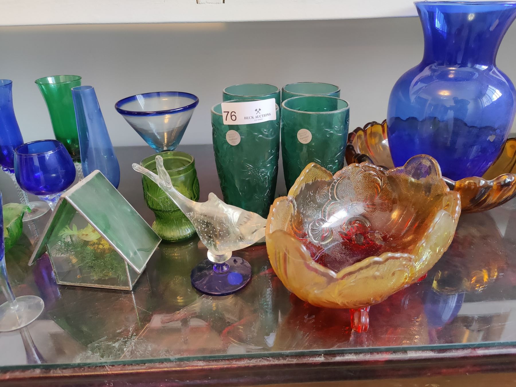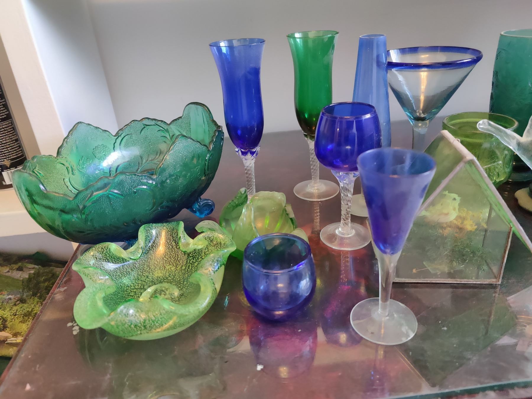 Large Collection of Coloured Glass Barware, Serving Bowls and more
