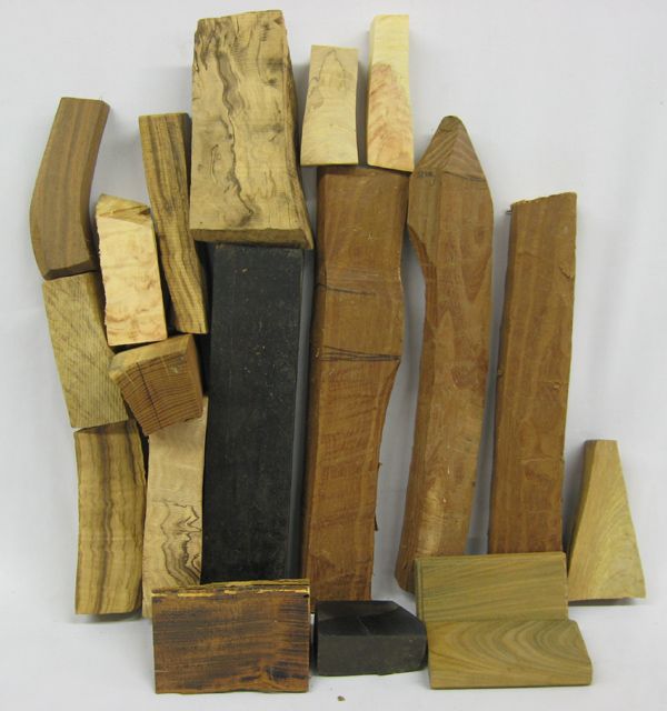 Collection of Exotic Woods, largest piece measures 13''L, included are mahogany, elm, ebony, cedar, teak, curly chestnut, maple, and other varieties
