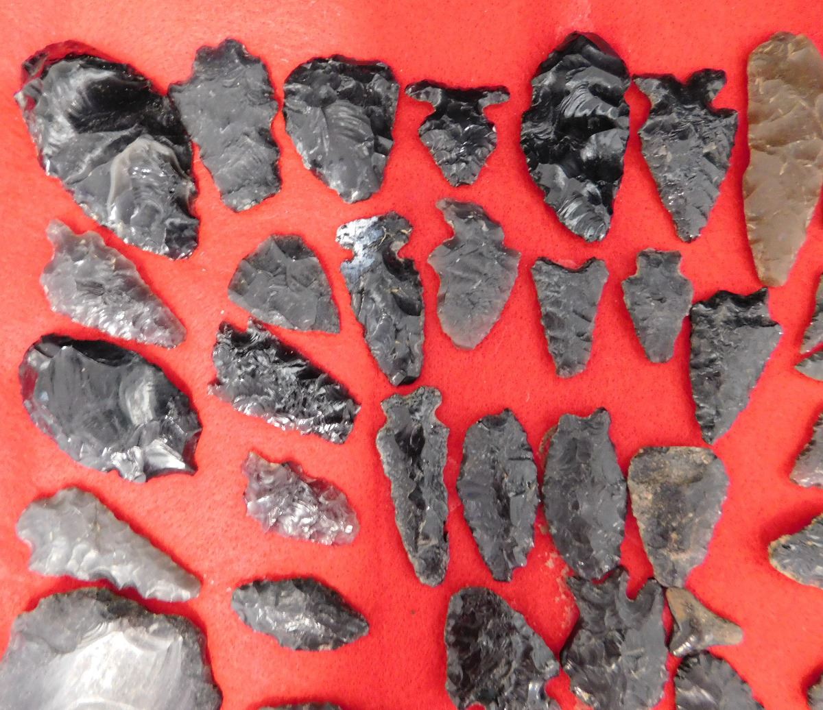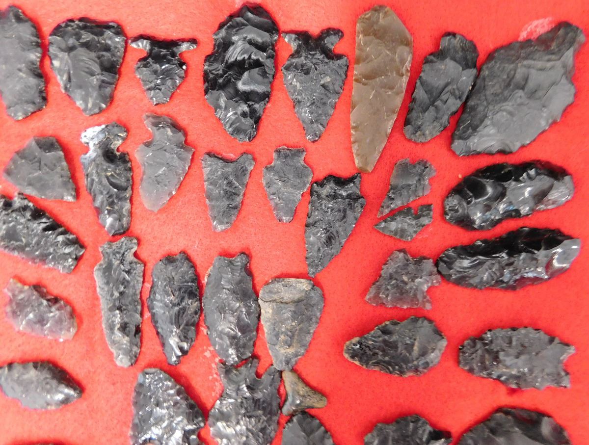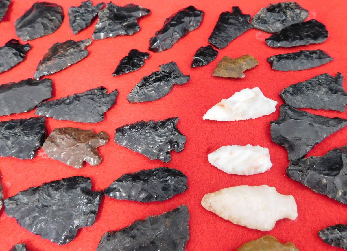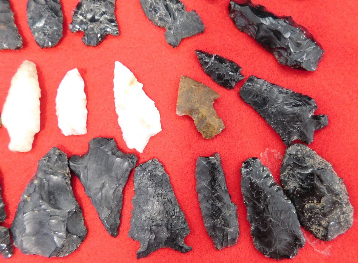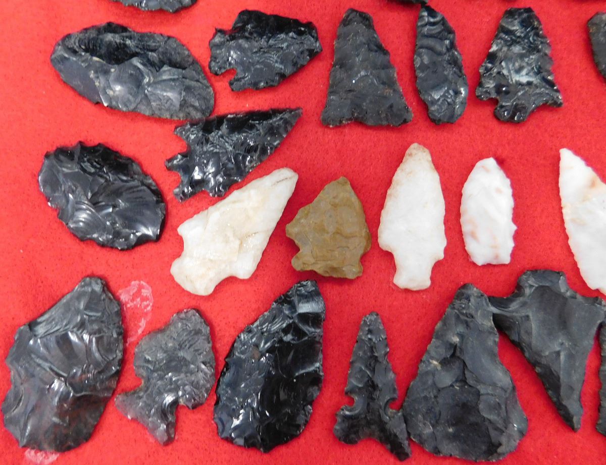 Items in the collection range from 3,000 to 10,000 years old and measure 1 to 2 1/2 inches. They are made of obsidian chert and quartz and were all found in one site on private land in Boise Idaho. See images. Many of the items have damage. Shipping: $20.00
