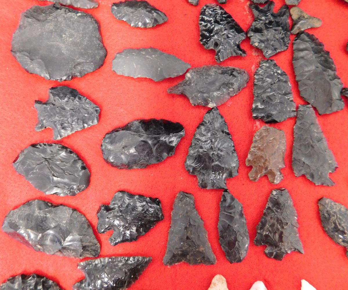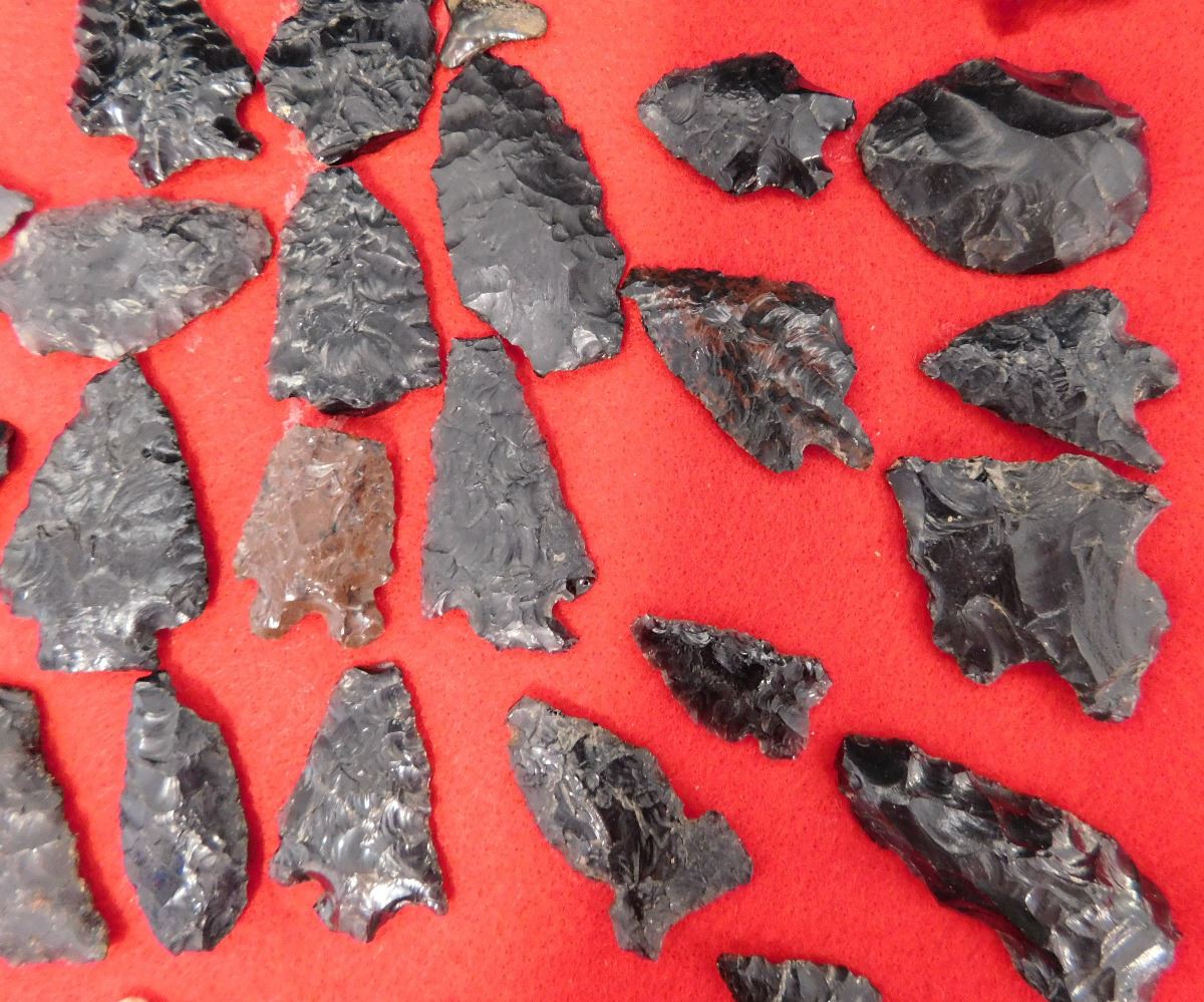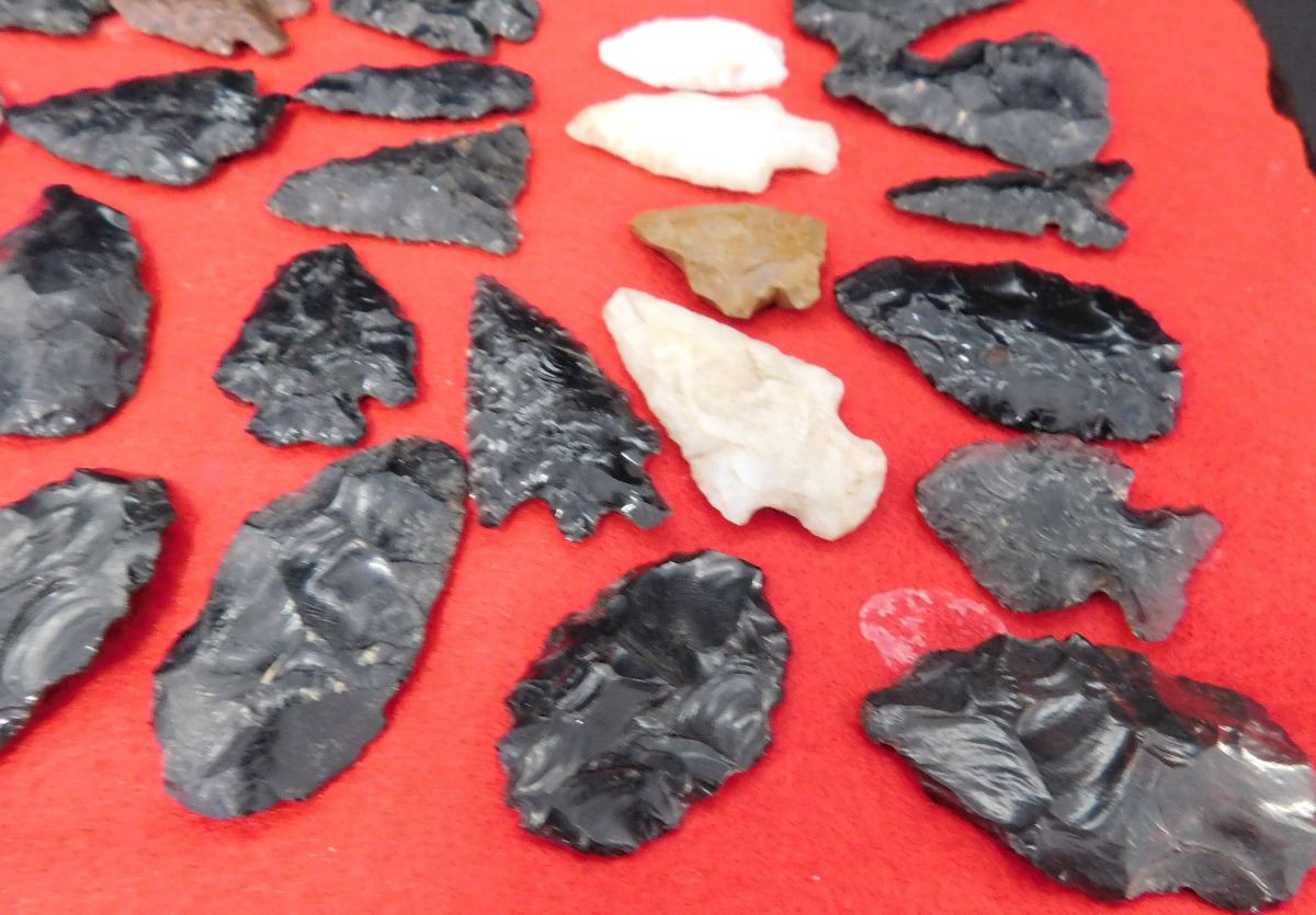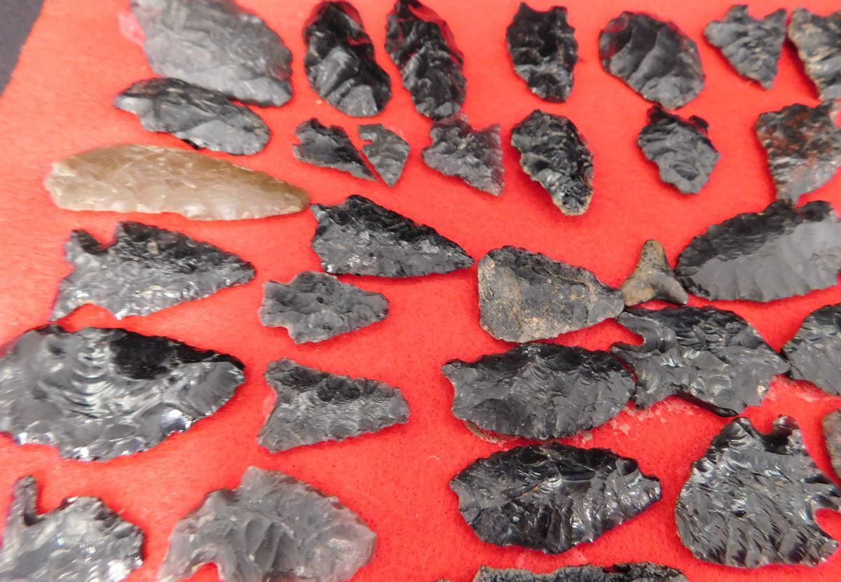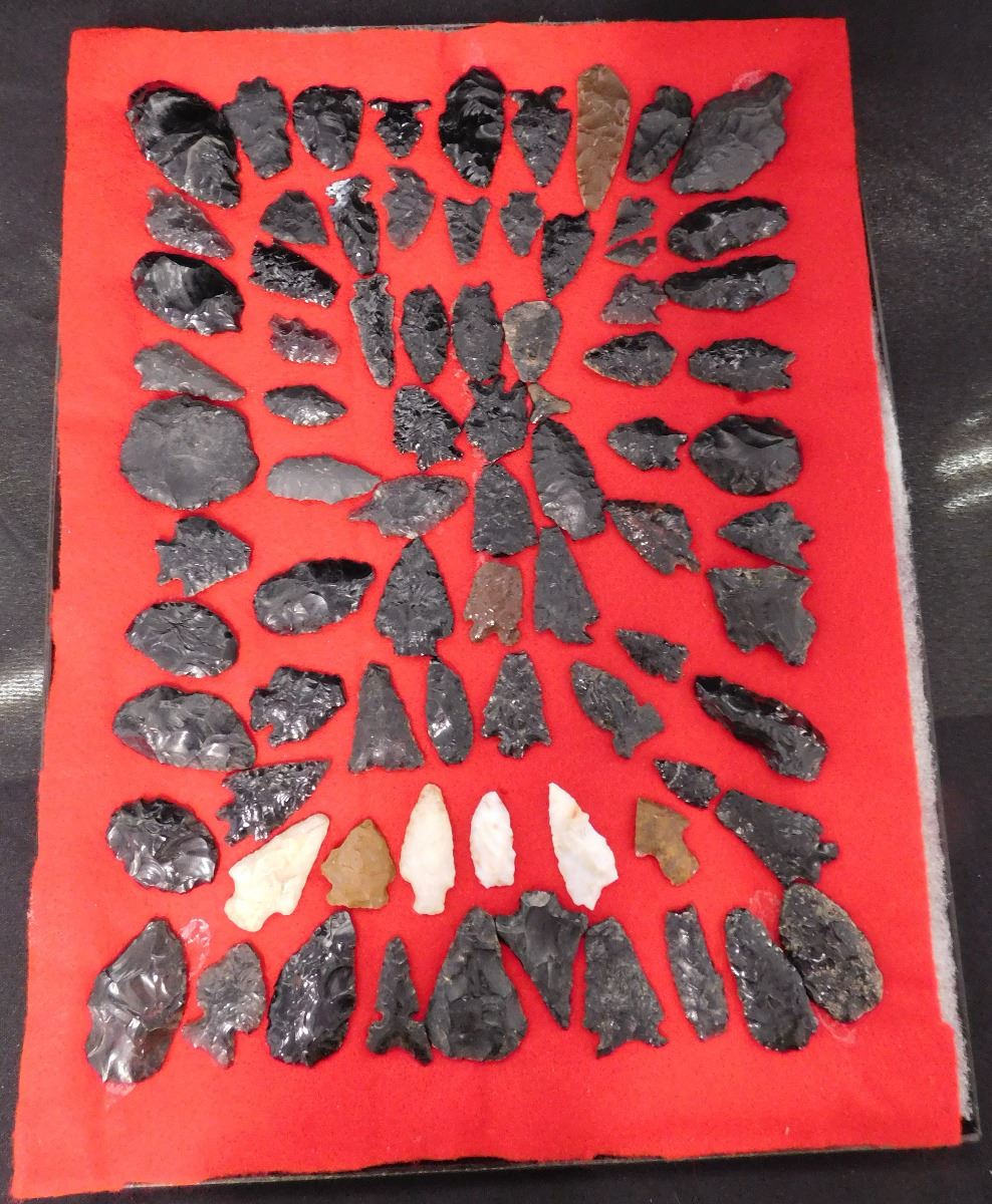Items in the collection range from 3,000 to 10,000 years old and measure 1 to 2 1/2 inches. They are made of obsidian chert and quartz and were all found in one site on private land in Boise Idaho. See images. Many of the items have damage. Shipping: $20.00