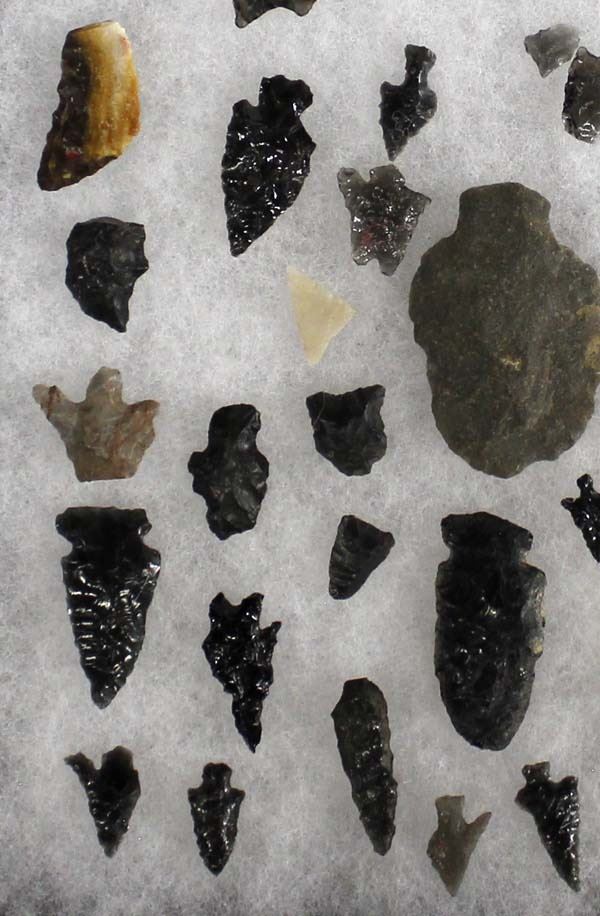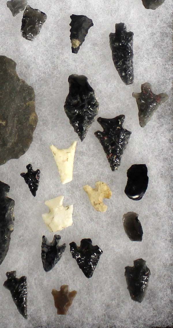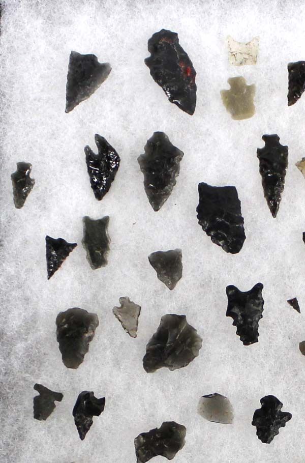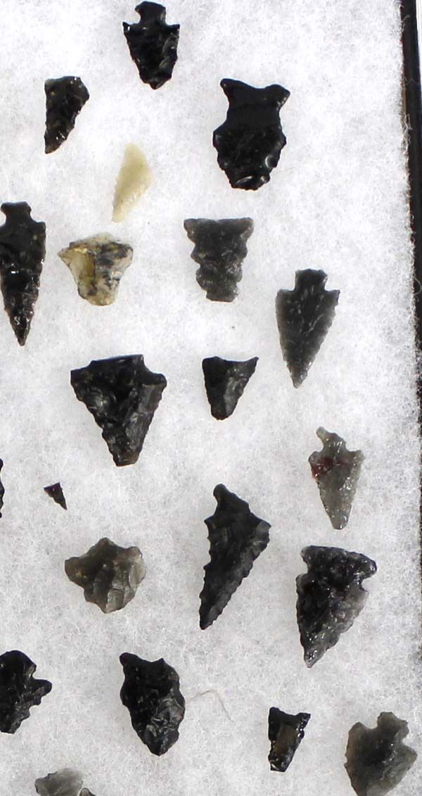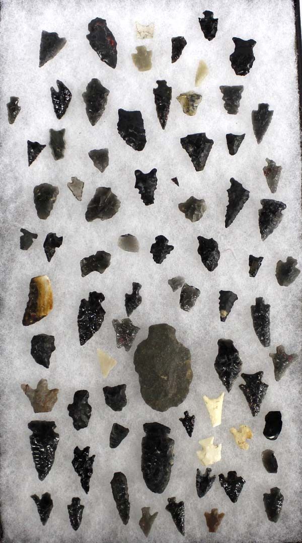 Large Collection of Prehistoric Stone Arrowheads, most are obsidian, longest measures 3''L