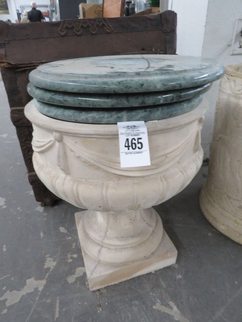 Large Concrete Footed Vase w/3 Marble Table Tops