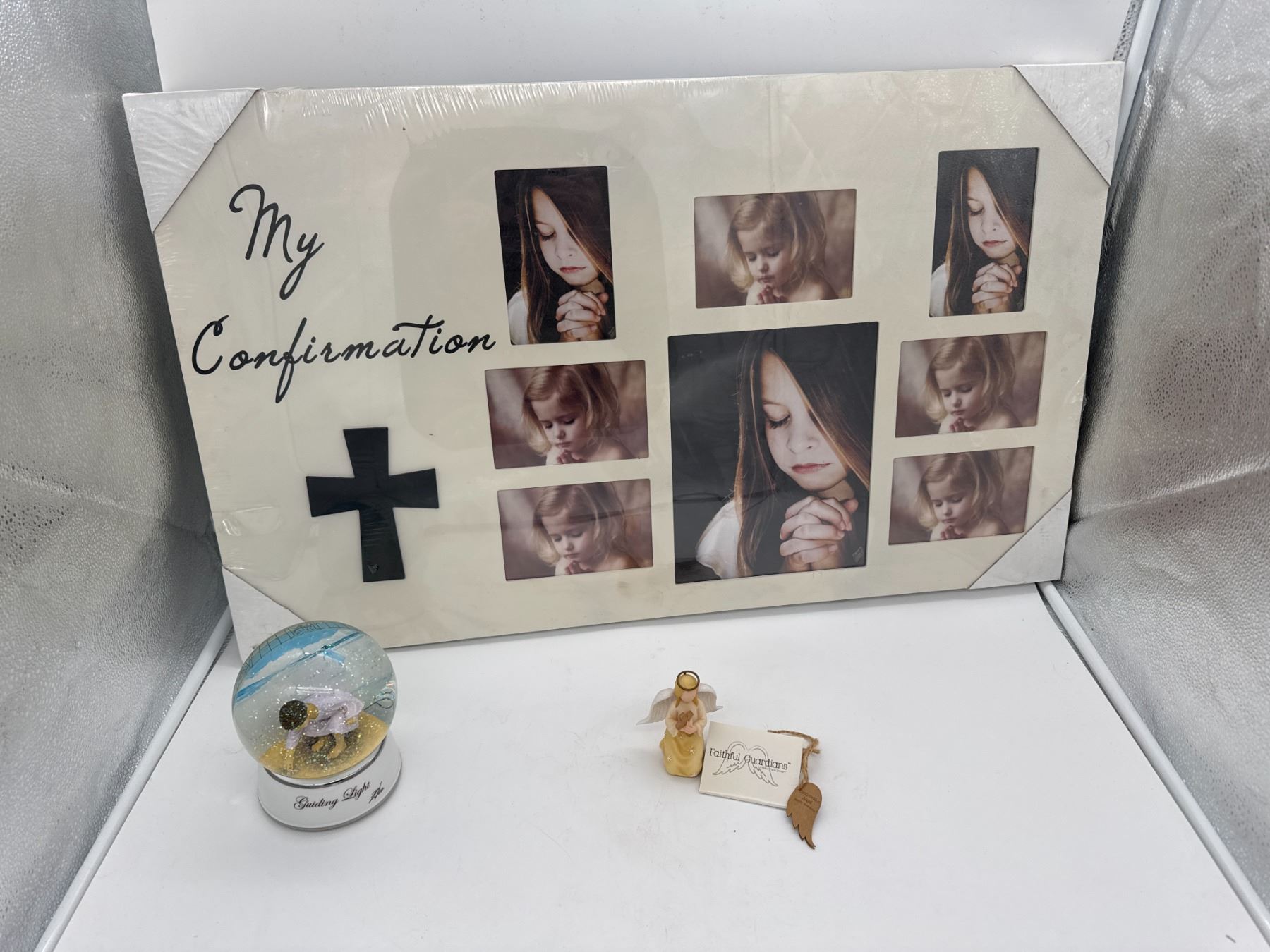 Large Confirmation Frame, Guilding Light snowglobe, Confirmation Angel "Faithful Guardians"