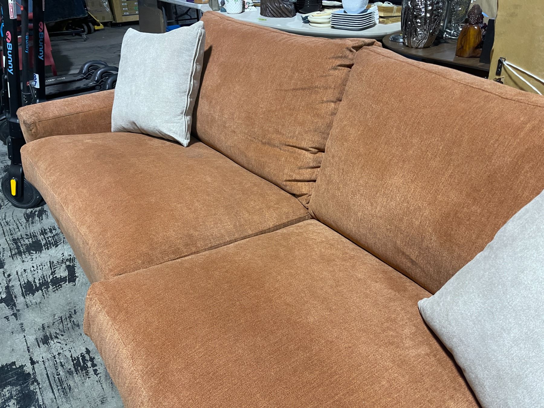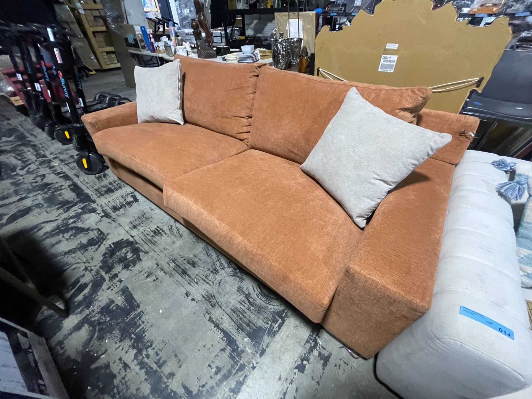 Large Contemporary Fabric Sofa - Rust Orange - Approx. H31" x W95" x 41"