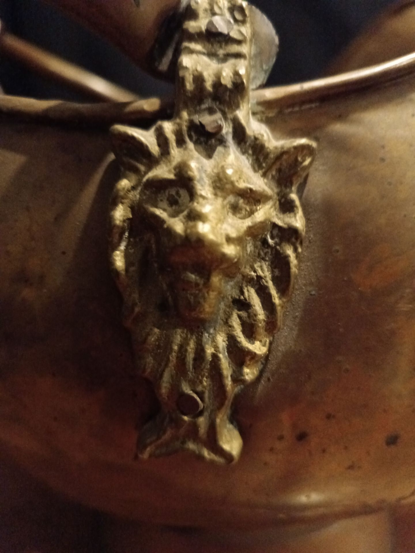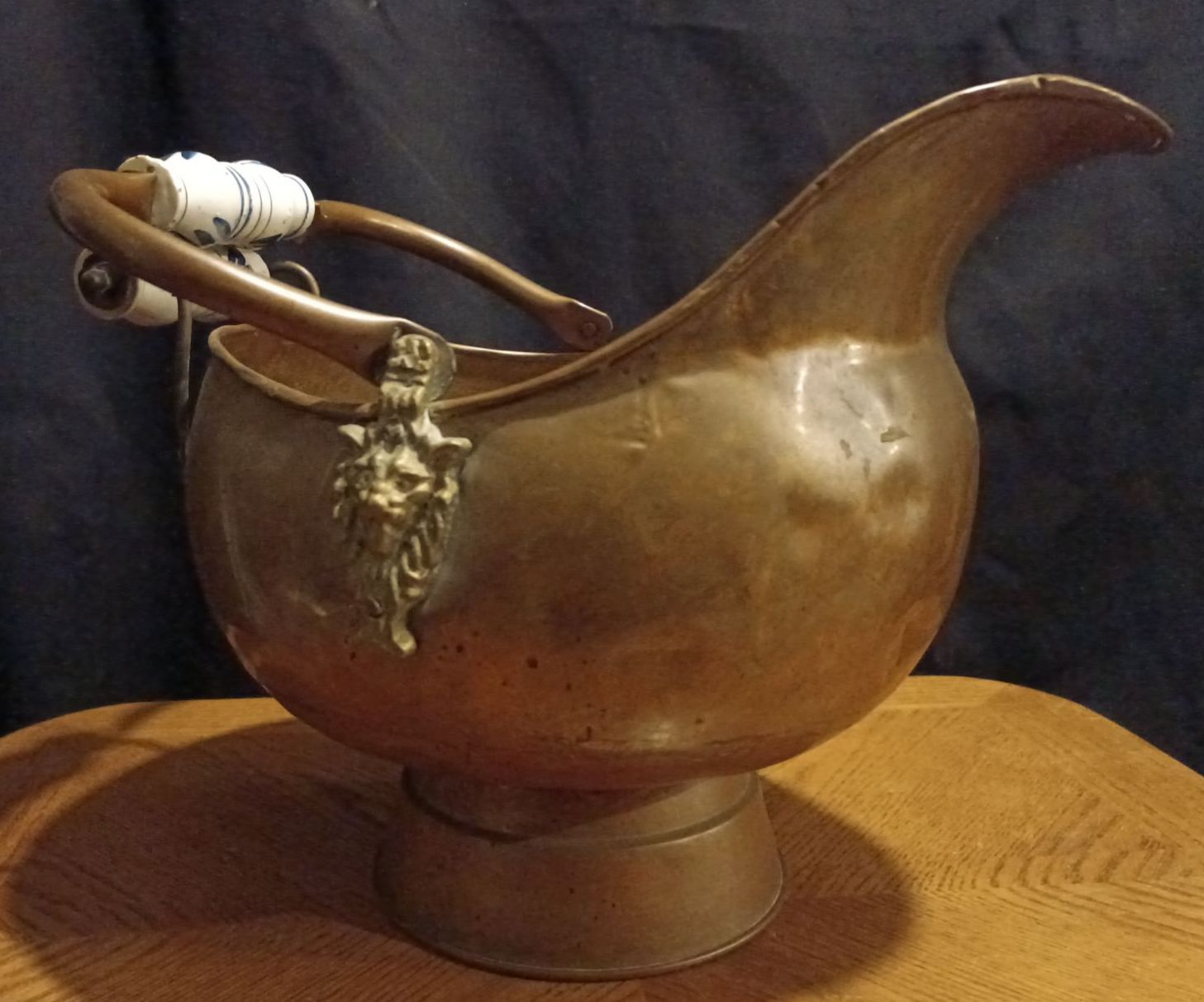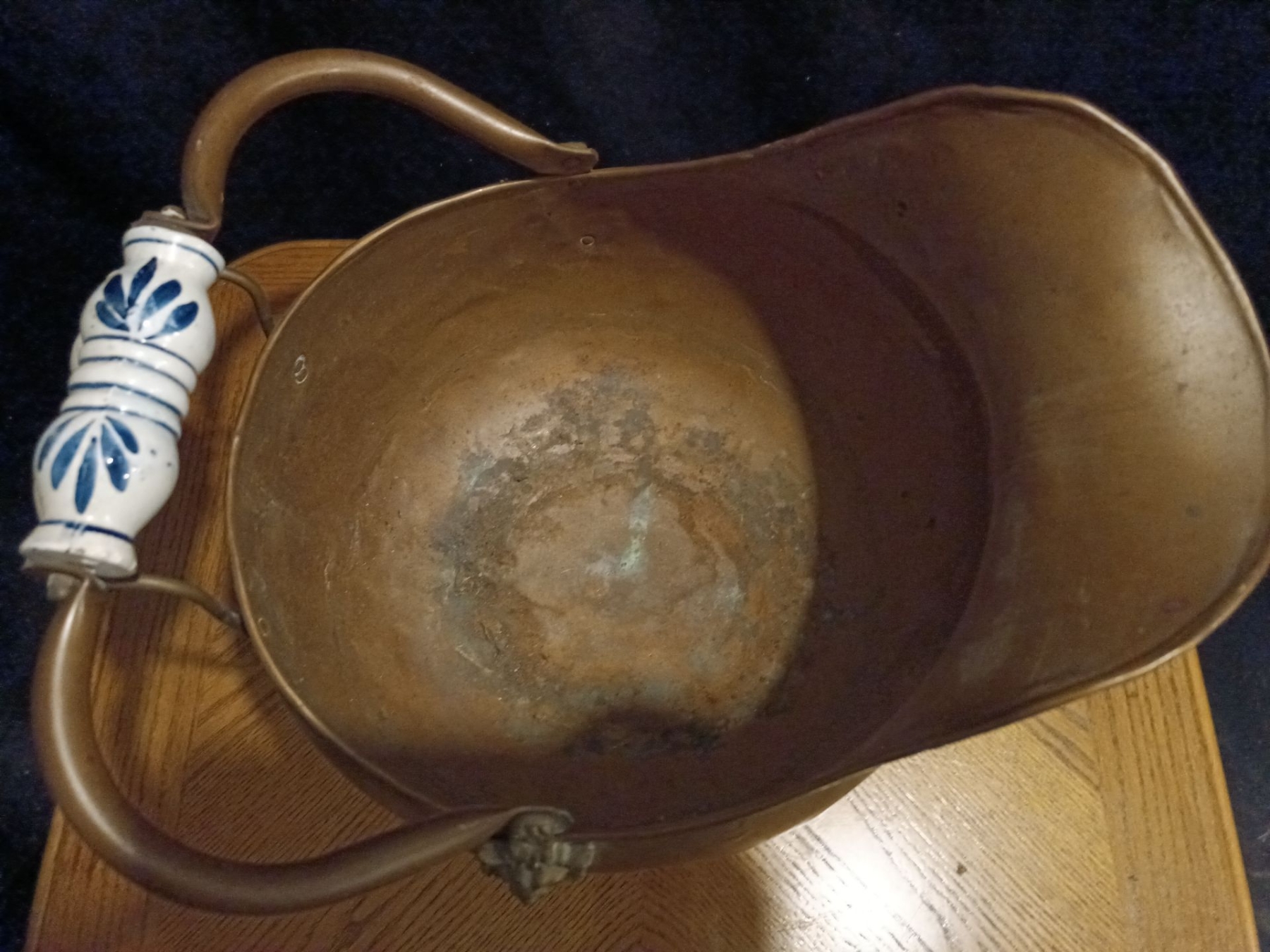 Large Copper Coal Scuttle w/ Porcelain Handle
