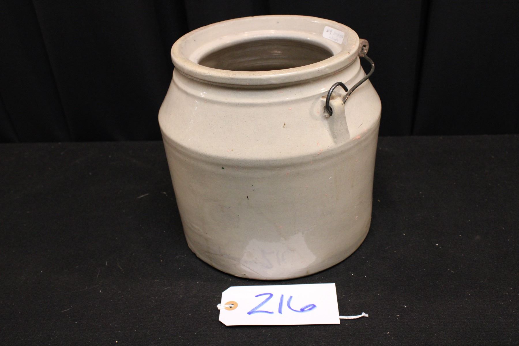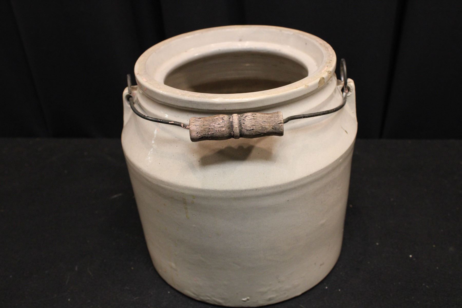 Large crock w/ handle. Cracked. 9.5" x 9"