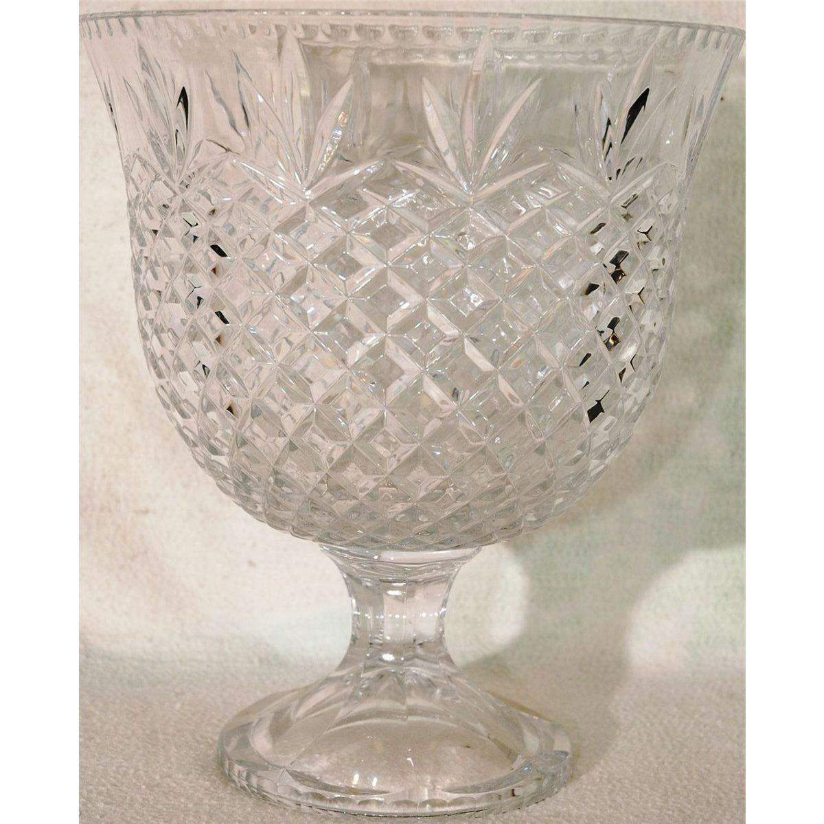 Large carved crystal bowl with pedastool base. 12" tall and 10" in diameter.