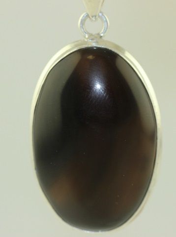 33mm by 22mm oval cabochon Dark Smoky Topaz set in a Sterling Silver pendant 11.8 grams total weight
