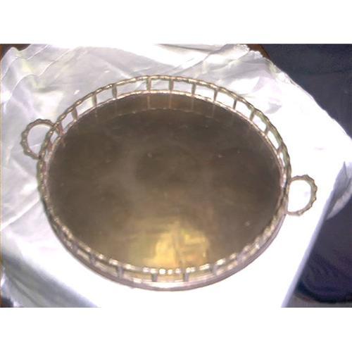 <tr><td>Title:Large Detailed Handled Brass Tray India</td></tr>