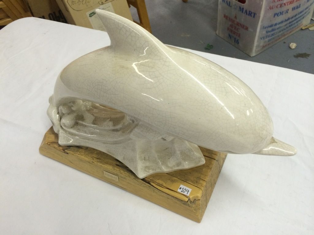 Large Dolphin Figurine With Hand Crafted Wood Base (18" long, 12" high)