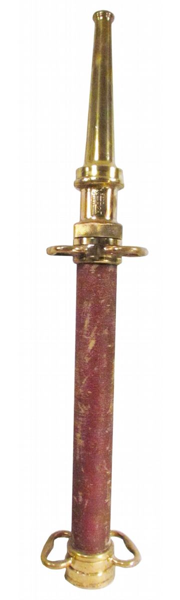 Large Double-Double Handled Cord Wrapped and Brass Fire Nozzle. Foamite Trade Mark, 2 1/2 on tip and base marked American LaFrance Foamite Corp. Elmira, USA. 40 1/2 inches tall.