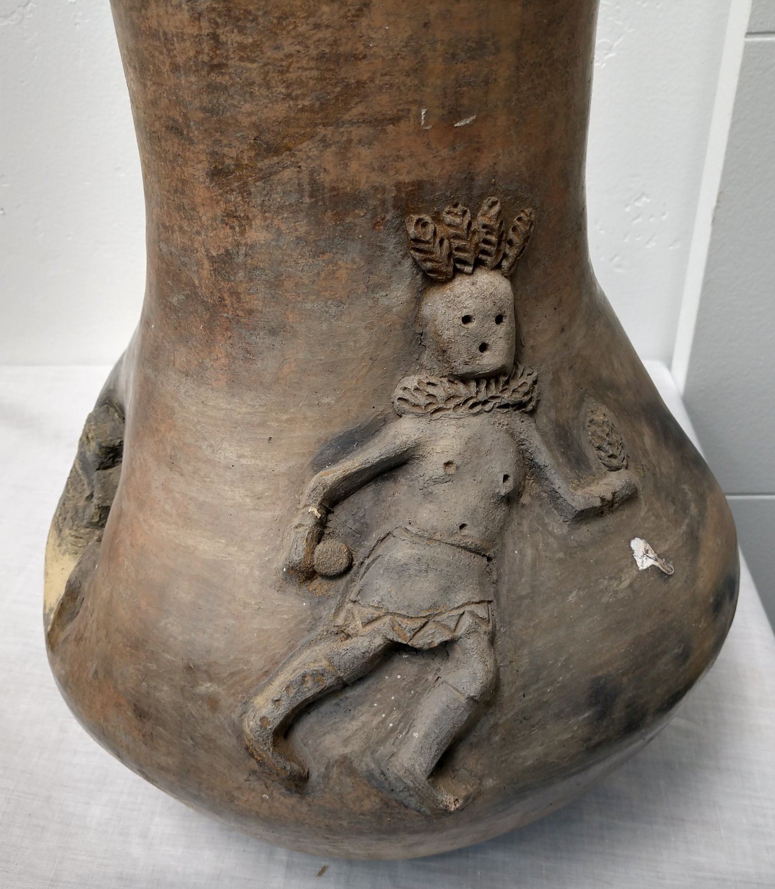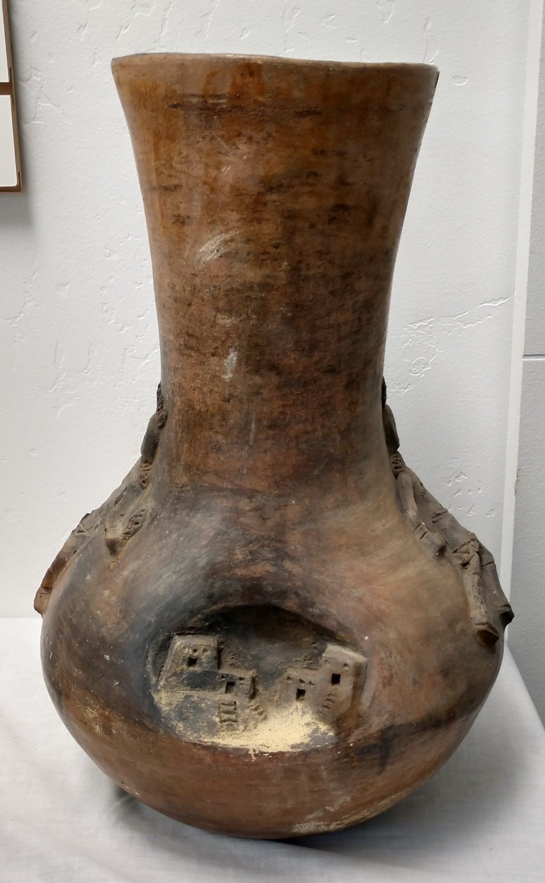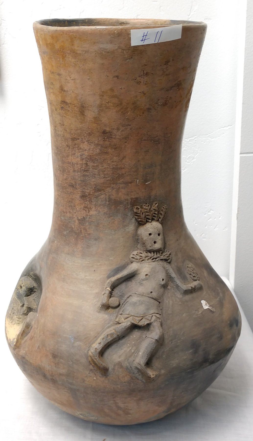 Large Effigy Olla, 20th century item. Made of clay, the item measures 18" x 12" x 12". Navajo, Arizona. Kachinas and pueblo effigies. Condition: Good, see images. Shipping: $65.00 USA estimate only, w/insurance and signature due to size and value.