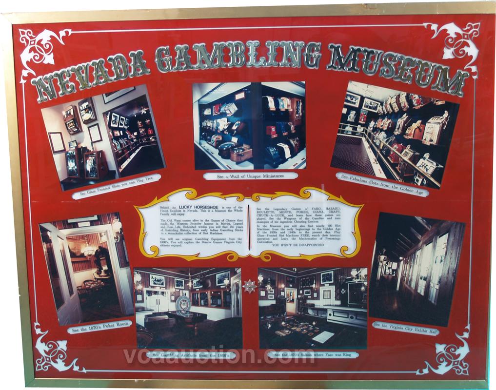 Large Electric Back Lit Sign From The Nevada Gambling Museum, showing interior photos of the museum - 62" x 50" x 8" deep