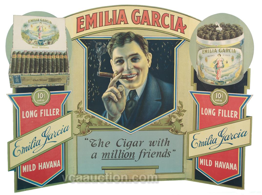 Large Emilia Garcia Cigar Cardboard Store Window Display, "The Cigar With A Million Friends" in good condition - approx. 44" x 30"