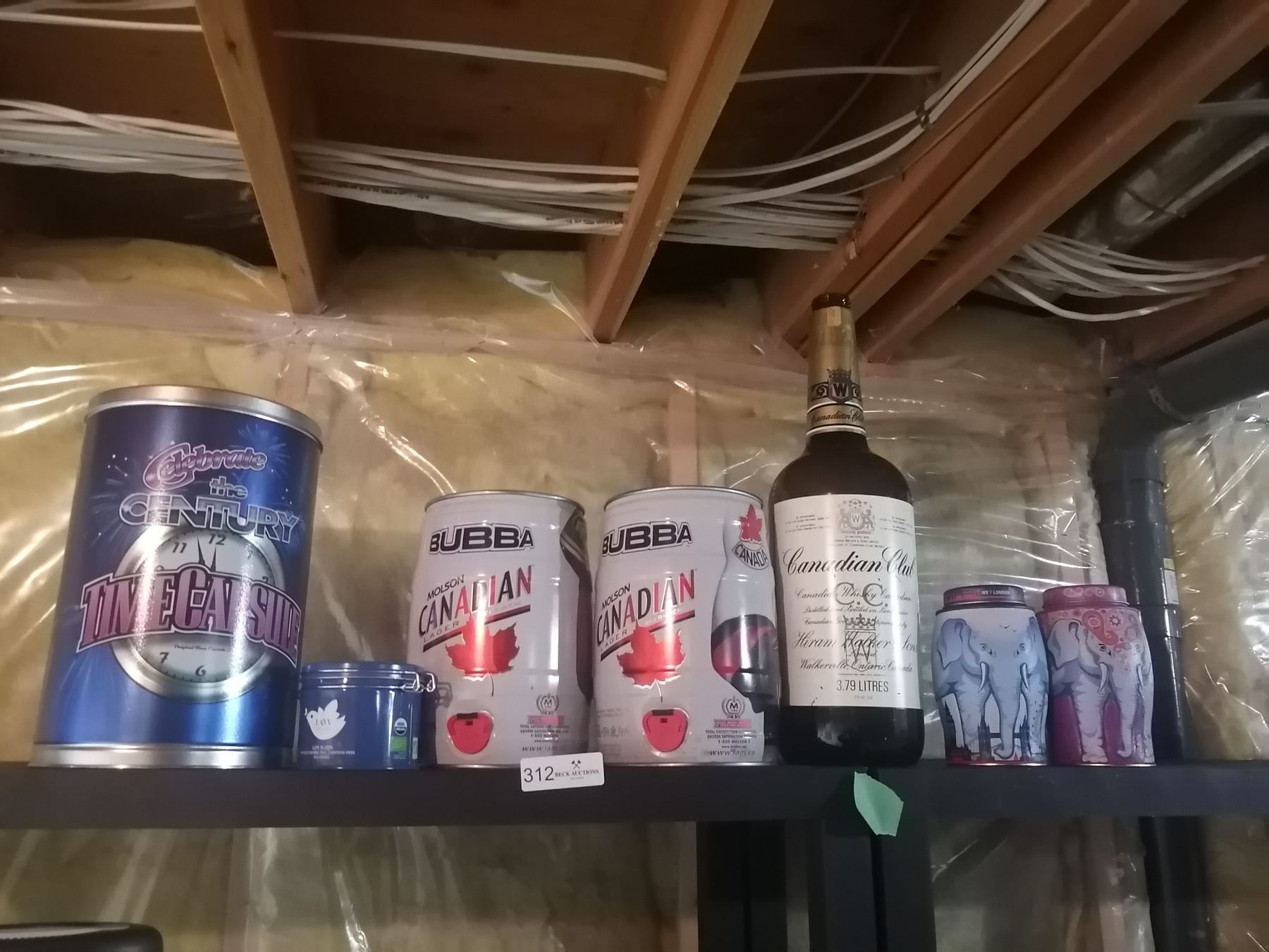 Large Empty Canadian Club Bottle, 2 x Empty Molson Canadian Kegs, Time Capsule, Assorted Metal Tins