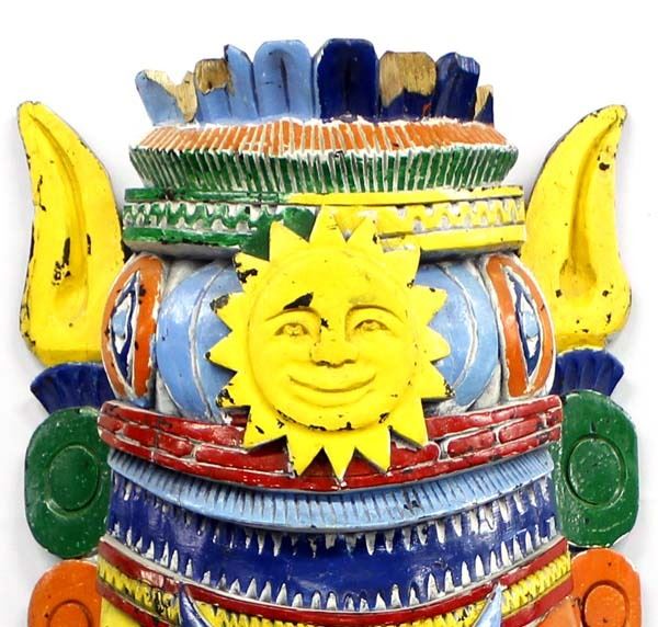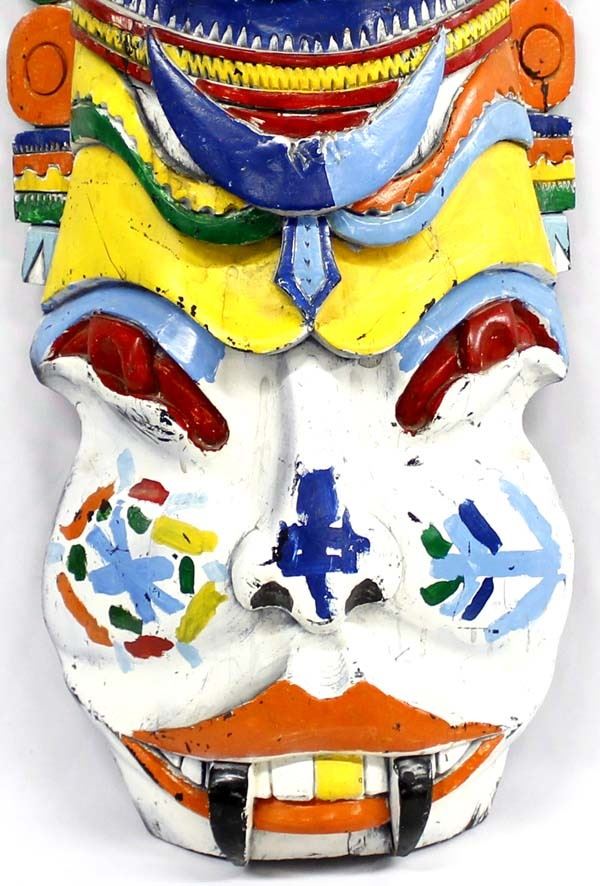 Large Ethnic Carved Wood Mask, measures 32'' x 14'' x 7'', hand painted, pressure crack on back, some chips out of crown area